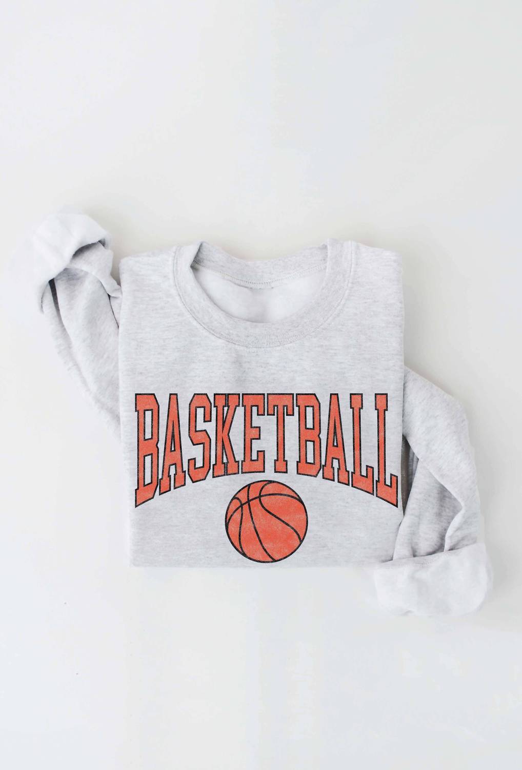 This women's crewneck features a bold basketball graphic in a vintage-inspired design, spun from plush sponge fleece fabric for exceptional softness. With long sleeves and ribbed cuffs and waistband, it is perfect for daily wear and year-round layering.