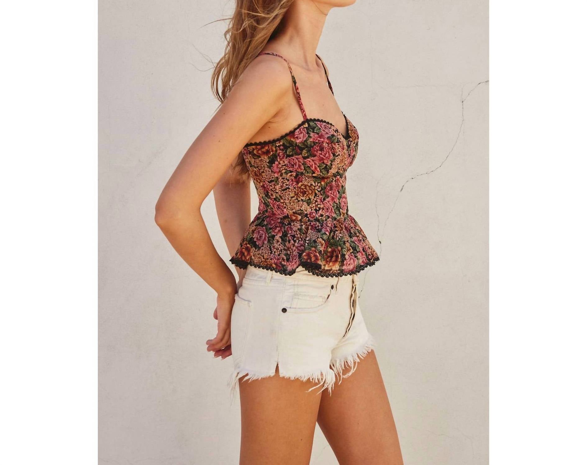 Perfect for layering or cute enough to wear it on its own. Discover the DRESS FORUM Odette Camisole Top, a statement piece in captivating rose and black. Featuring delicate spaghetti straps and a sweetheart neckline, this vintage floral print design includes a secure zip closure on the smocked back panel. Crafted entirely from polyester, it boasts lace trim and a chic flared ruffle hem for an unmistakably feminine touch. For best care, hand wash and line dry to retain its vibrant style.