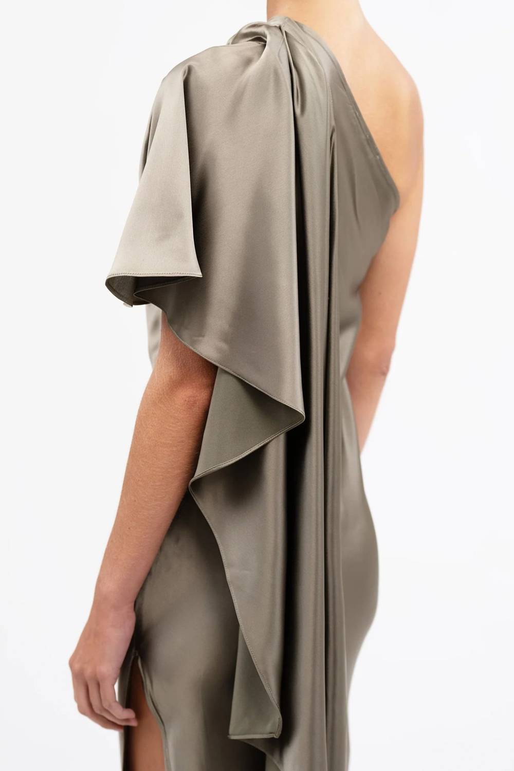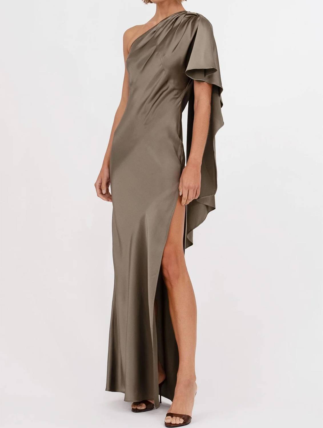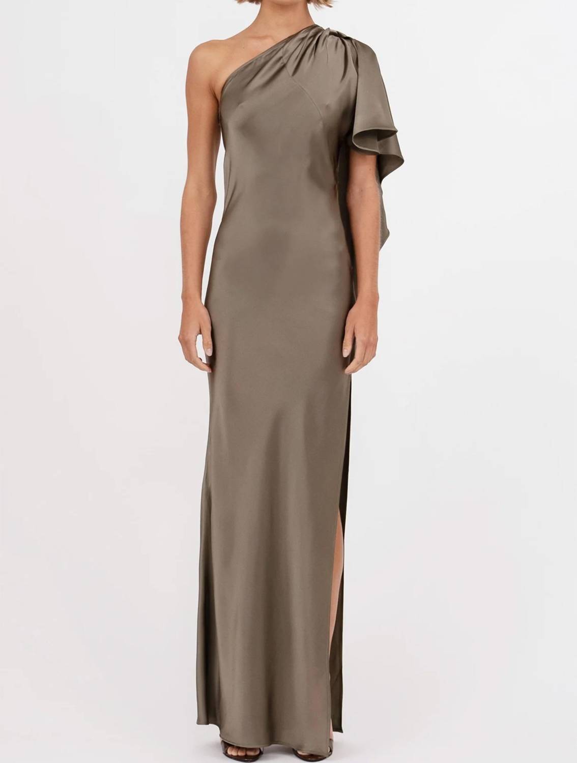 Show just the right amount of skin in this one-shoulder dress. Introducing the Lovell Dress by Nonchalant Label, a sophisticated piece in eye-catching moss green. This one-shoulder gown, ideal for weddings or New Year's Eve celebrations, features a short sleeve and an A-line silhouette in solid polyester. With a pull-on closure, it exudes minimalist elegance, perfect for fall festivities. Care for this piece with dry clean only instructions.
