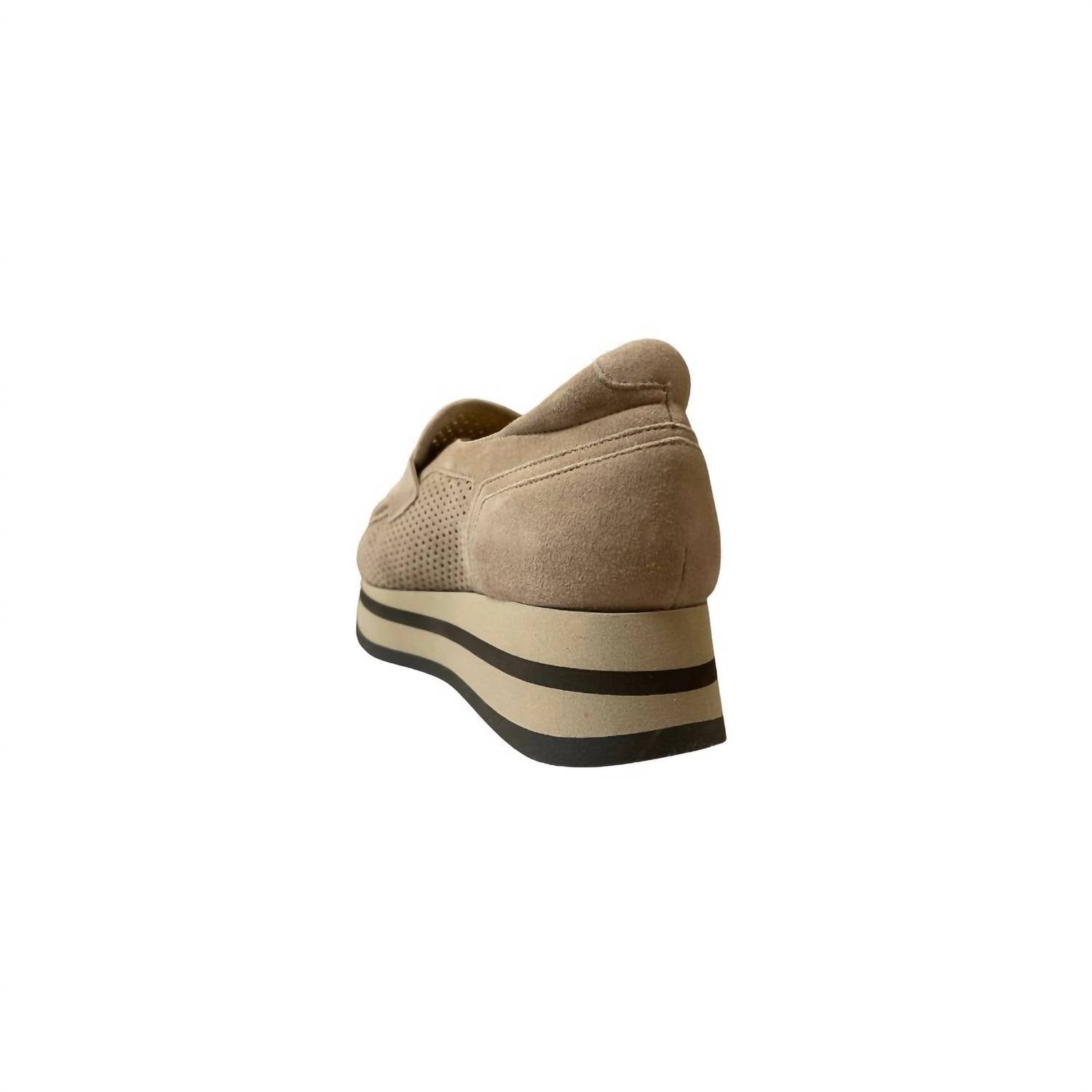 A trend that everyone is loving and this style might just be our favorite. Introducing the Women's Cleo Velour Loafer by Softwaves, a standout piece in Sahara suede for those embracing 90s fashion trends. This loafer combines a perforated suede upper with a striking black and white platform sole for a bold, modern look. The style features a comfortable round toe and offers a platform heel of 2.3622 inches, perfect for a spring vacation. Originating as an ideal choice for a trendy and versatile wardrobe update.