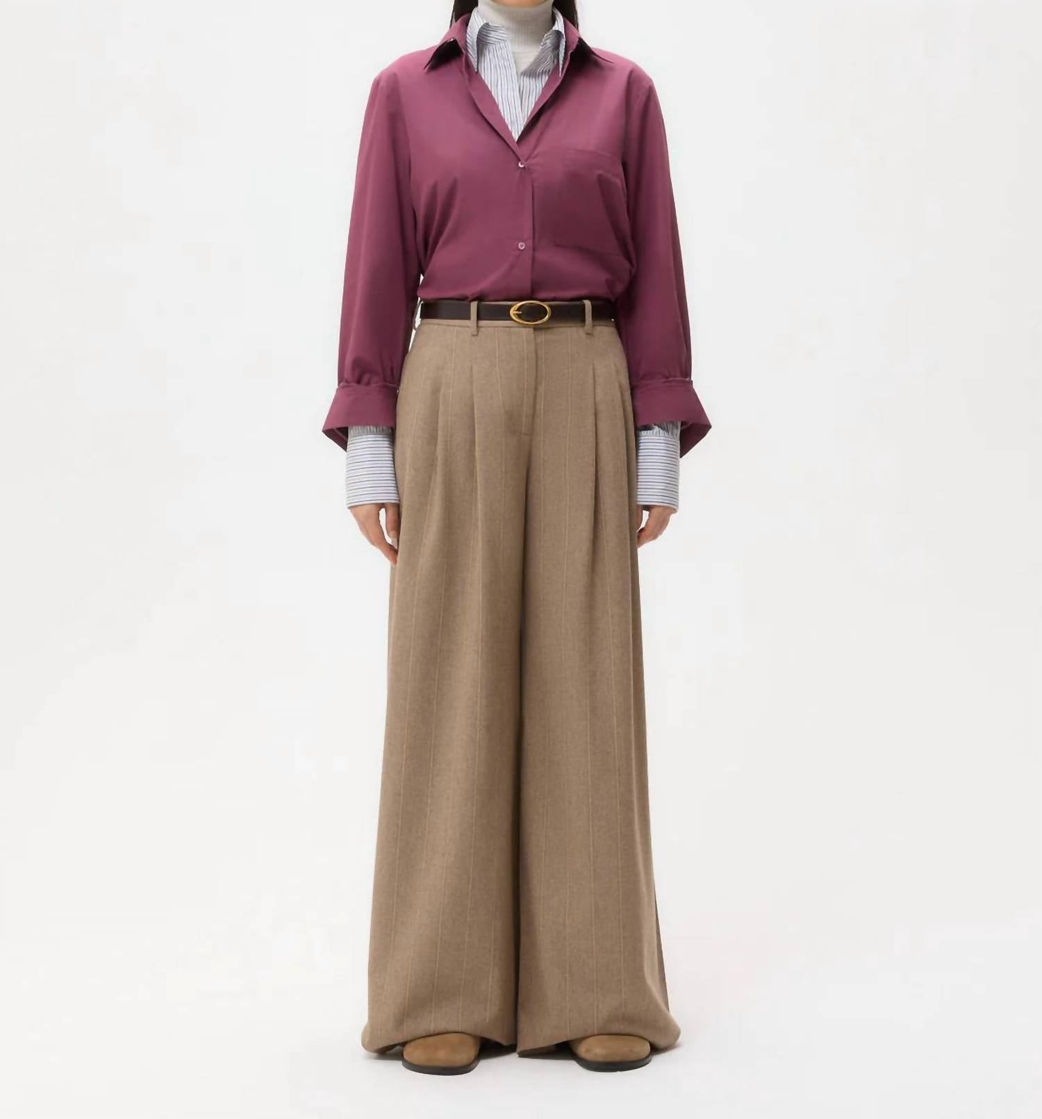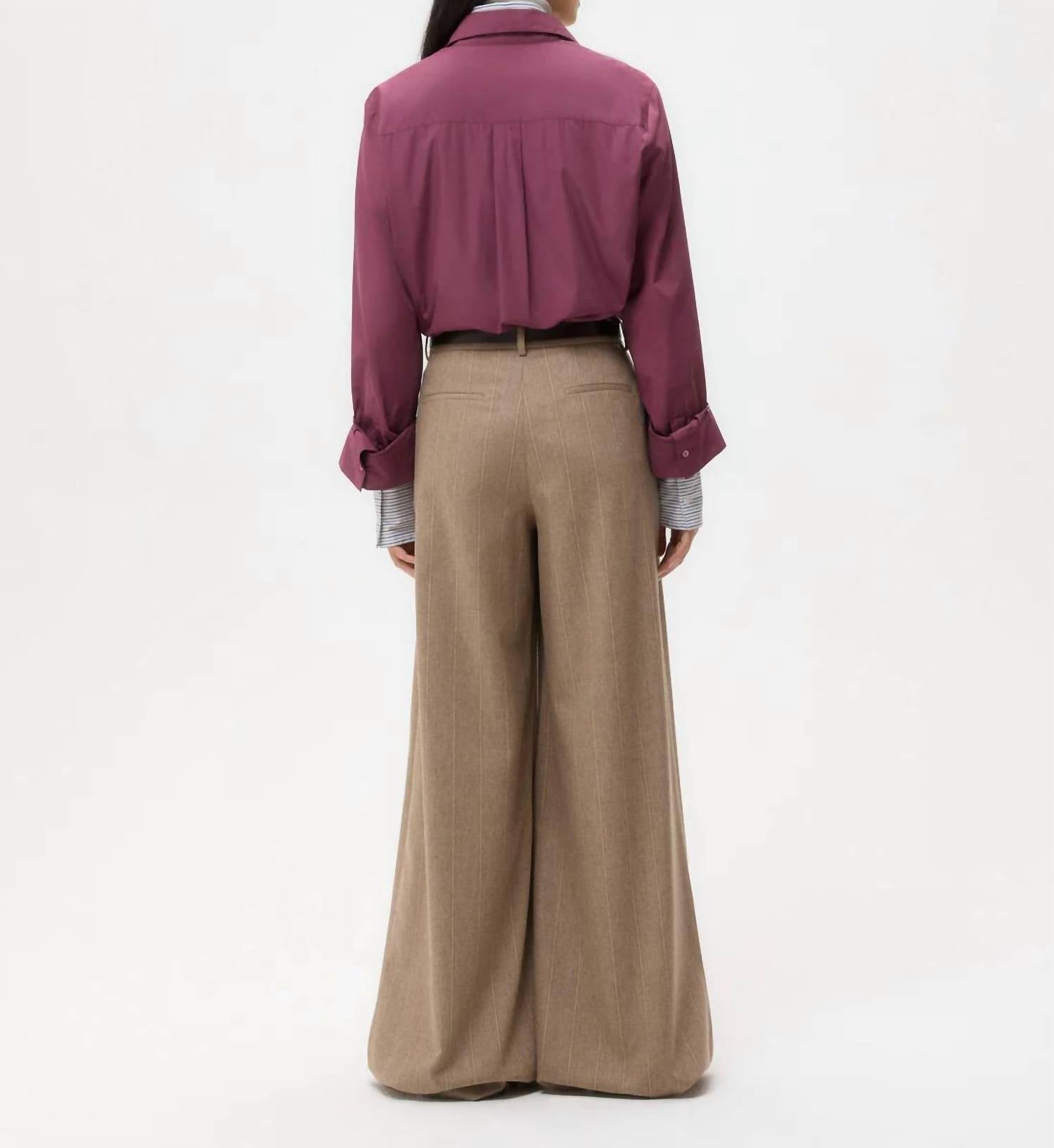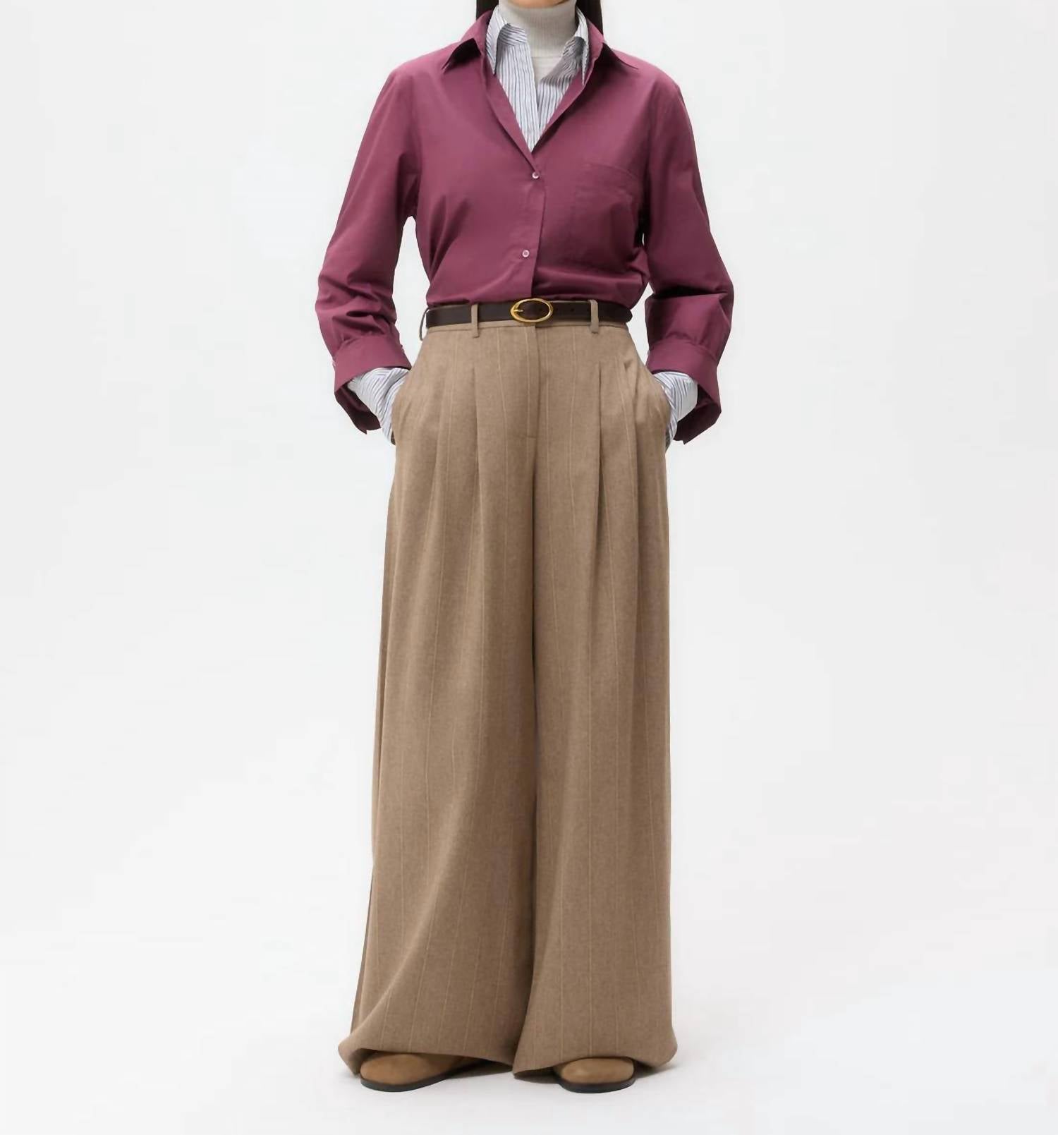 Discover the Avery Pants by TWP, crafted in comfortable stretch wool suiting with a stylish wide-leg design. These mid-rise pants in a patterned brown color feature both side and back welt pockets for functionality. The blend of 90% wool, 8% cashmere, and 2% elastane ensures a perfect fit. Closure: Concealed zip and hook and eye. Perfect for women seeking versatile spring style.