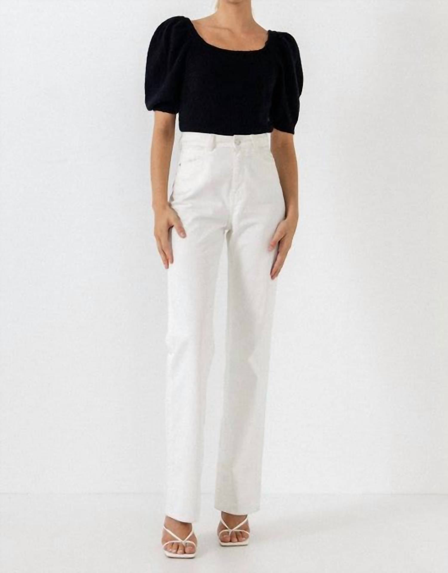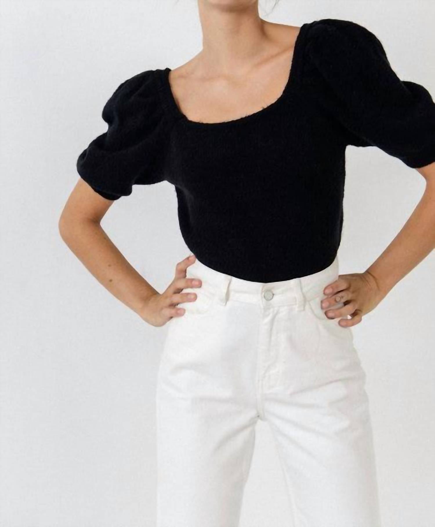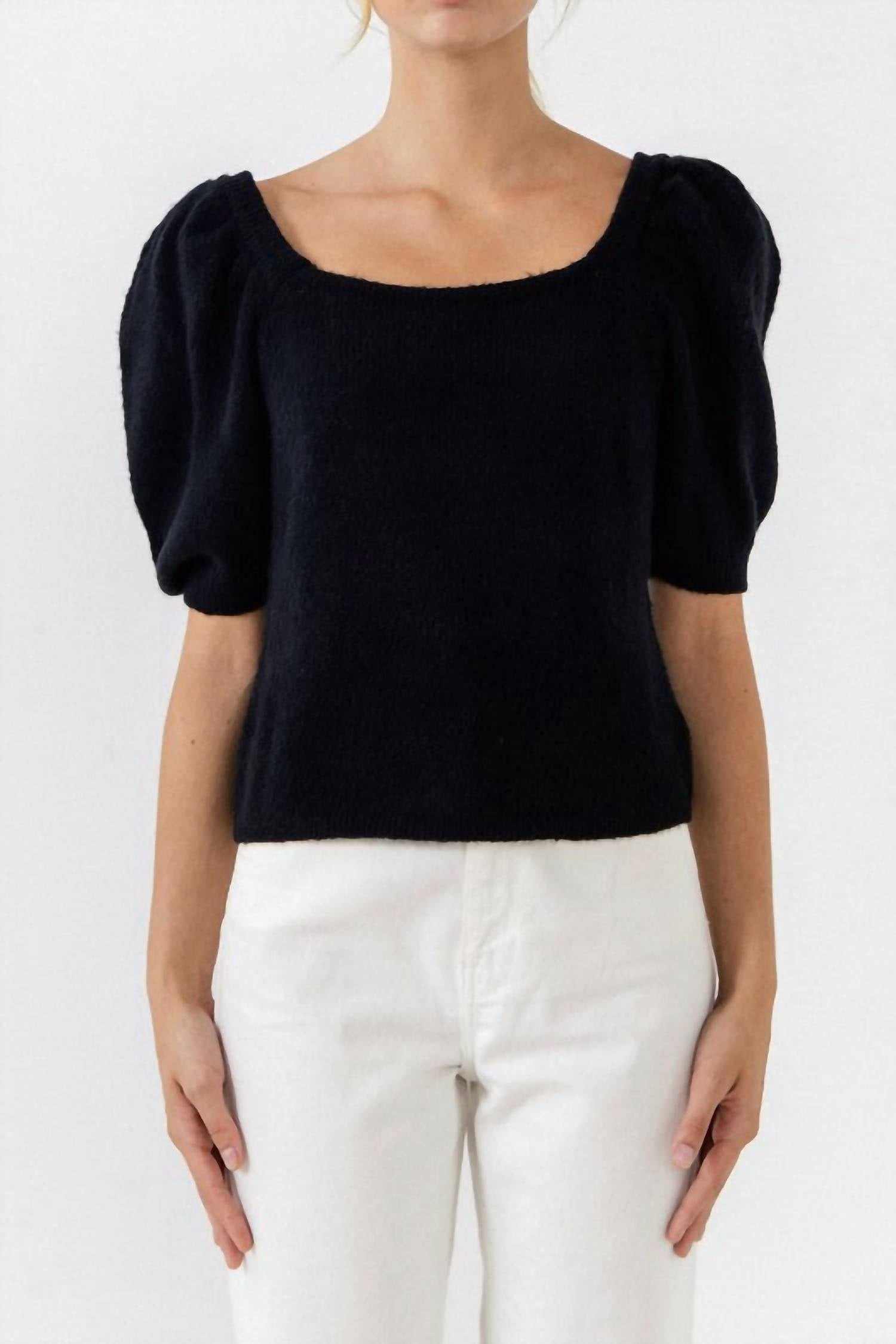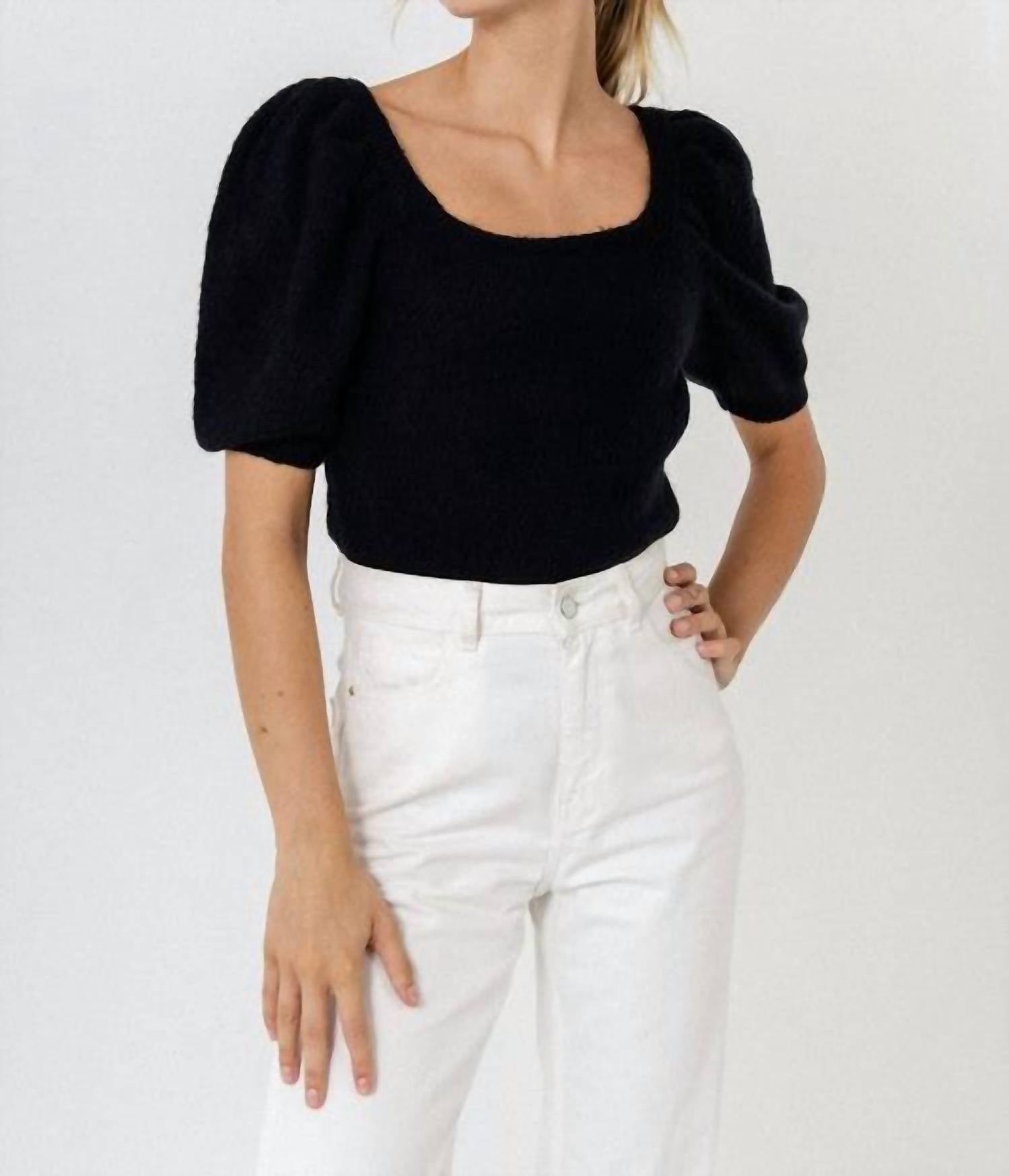 Stay warm and stylish in this versatile and effortlessly cool knitwear staple. Wear it alone or layered, it's the perfect sweater for the season and you'll wish you had it in every color. Standout minimalist piece in solid black. Featuring short puff sleeves and a chic square neckline. Crafted from a blend of 65% Acrylic, 25% Nylon, and 10% Polyester for a balanced feel and fit. Originating as a versatile square neck essential. Pull on style. Hand wash. Perfect for travel during the spring season.