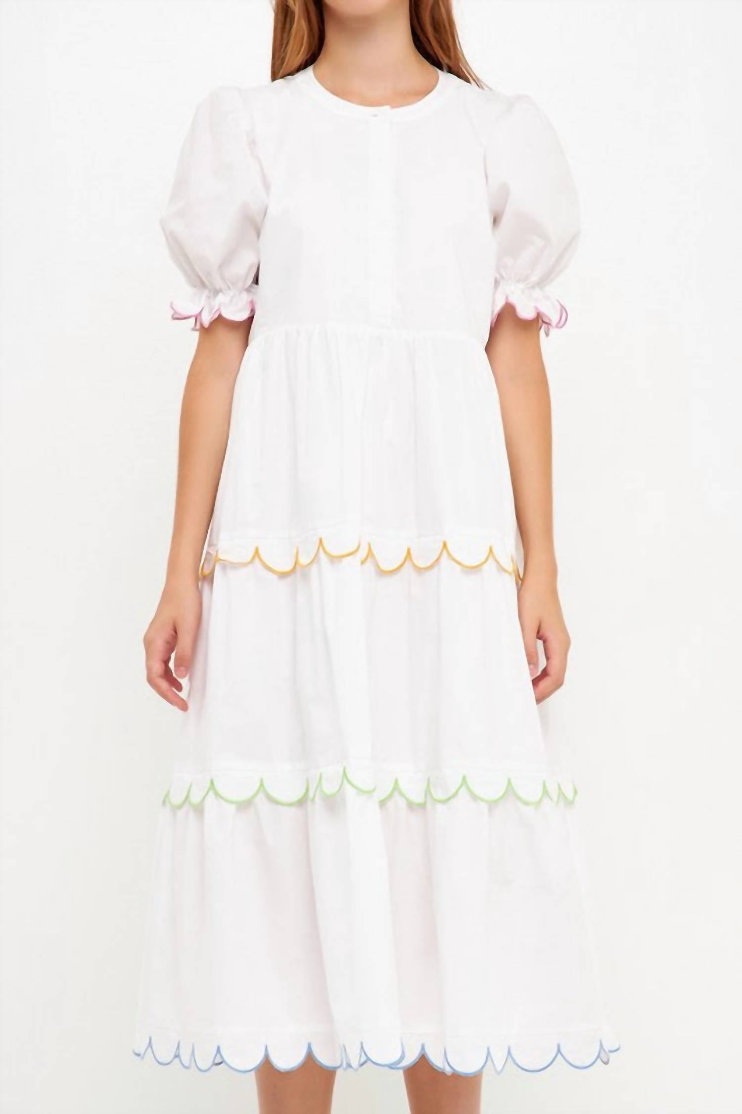 2.7 August Apparel - Scallop Edge Puffy Short Sleeve Midi Dress