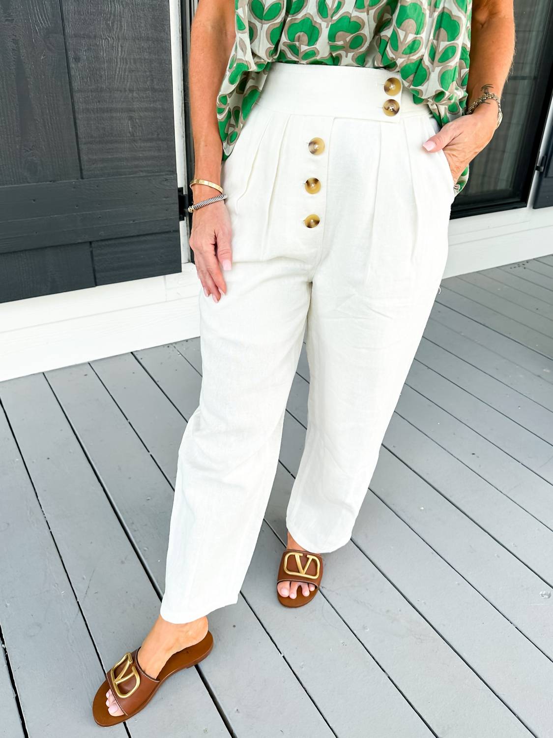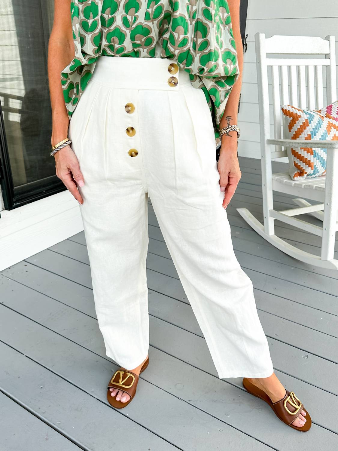 Step into comfort and style with these button-up pants, designed with chic detailing and a versatile silhouette that blends playful charm with a polished edge. Perfect for dressing up or down, they offer a flattering fit and effortless sophistication, making them a go-to piece for both casual and professional looks.