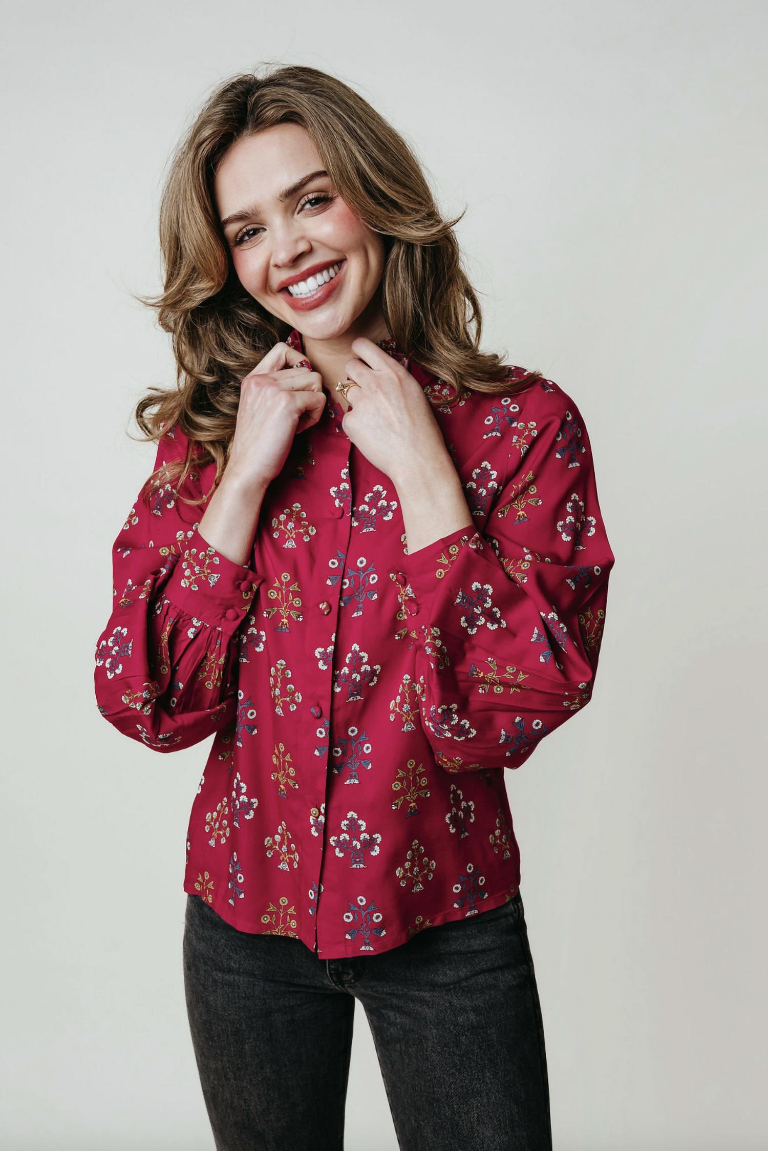 A versatile blouse that works from desk to dinner! Introducing the Sadie Blouse Top by 2.7 August Apparel, a stunning addition to any wardrobe in a vibrant floral Liberty print. This blouse features a classic collar and long sleeves for an elegant look. Crafted from quality polyester, it offers a sophisticated finish. The button closure ensures a sleek fit, and it's easy to care for with hand wash instructions.