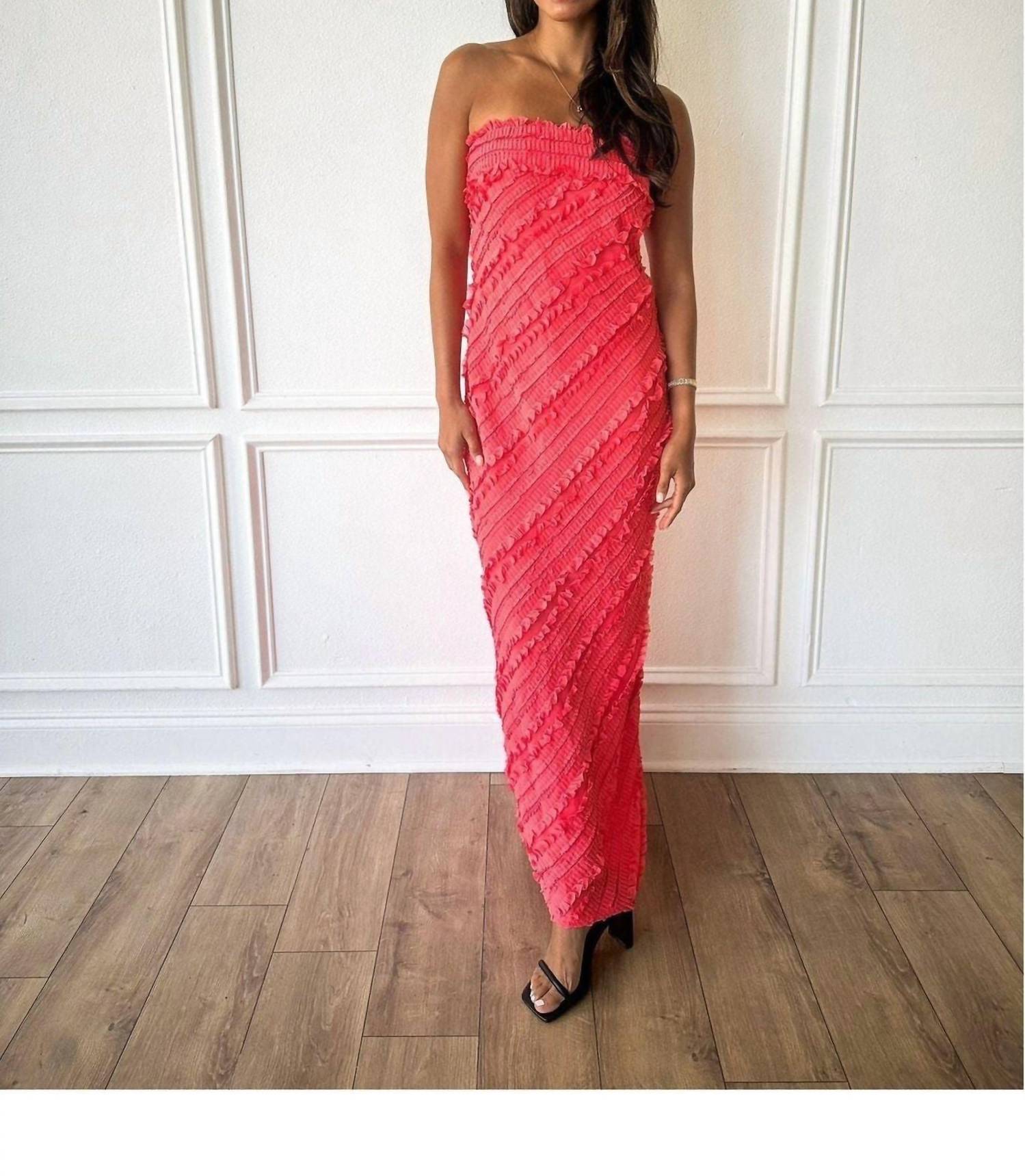 Who doesn't love a good maxi dress? This one you'll be reaching for season after season. Introducing the Hot Topic Maxi Dress by 2.7 AUGUST APPAREL, a daring choice for your next evening event. This strapless beauty, made from polyester, boasts a full-length hem with a bodycon silhouette and an off-the-shoulder neckline, dressed in a vibrant bold red. The textured diagonal pleating adds a chic, minimalist flair, perfect for any summer occasion. Closure: Pull-on style. Care: Hand wash cold and line dry. Model is 5'5" and wearing size XS. Sizing: XS fits 0–2; Small fits 2–4; Medium fits 4–6; Large fits 6–8. 100% Polyester