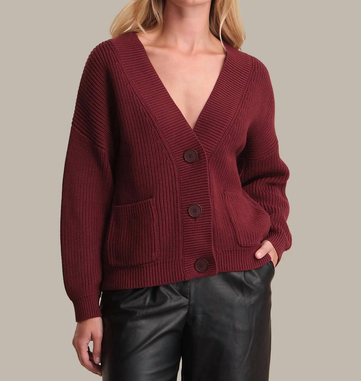 Wear this v-neck sweater with your favorite denim for the perfect fall look. Enhance your fall wardrobe with the Women's Celeste Button Down Cardigan by 525 America, designed in a rich Oxblood hue. This long sleeve, cotton knit piece features a classic V-neckline and a relaxed, oversized fit, making it perfect for versatile layering. With a length of 24 1/2 inches, it can easily add warmth and sophistication to any outfit. Crafted from 100% cotton, it comes with a button closure and is conveniently machine washable, tumble dry low.