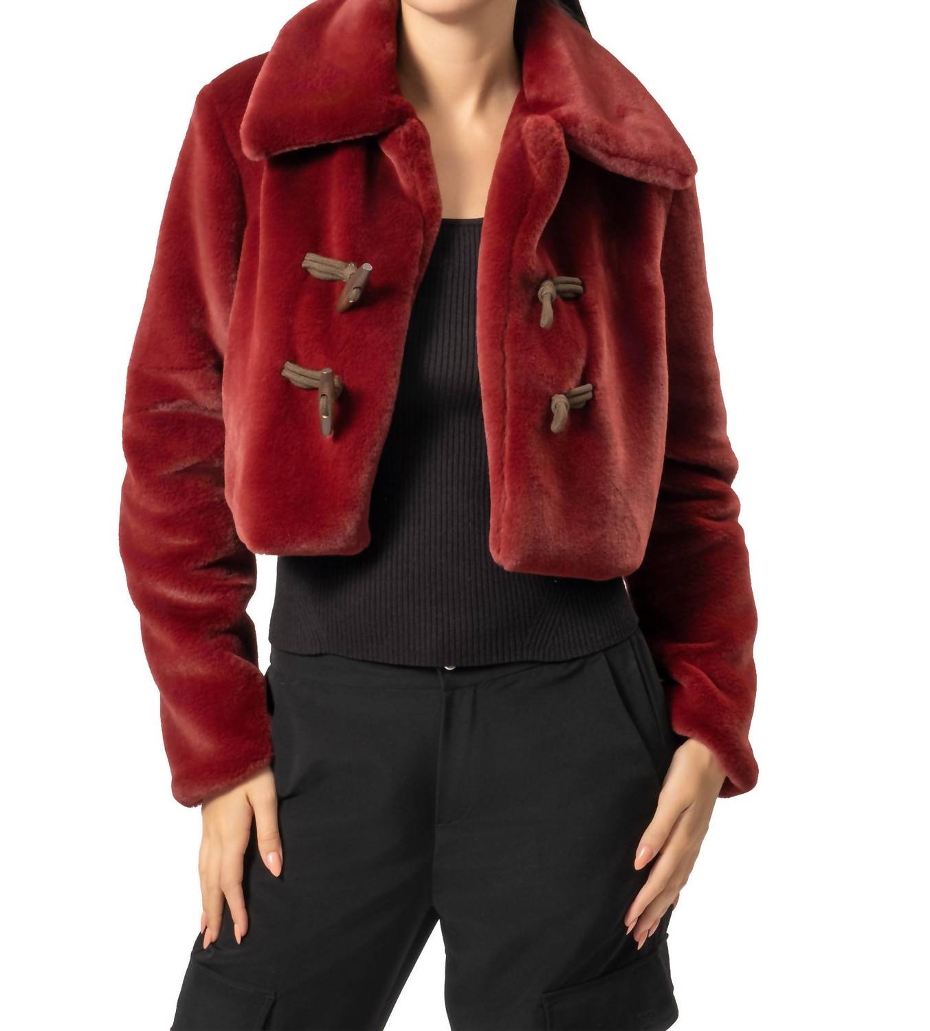 Downright adorable and so comfortable you won't want to take it off. This teddy jacket is a fan favorite. Elevate your winter wardrobe with the Abi Faux Fur Jacket by Area Stars, a luxurious choice in rich burgundy. This teddy jacket features a solid monochrome pattern with long sleeves and a sophisticated double-breasted closure, perfect for keeping warm during the holiday season. Crafted entirely from 100% Polyester, its collar neckline and full lining provide additional comfort and style. This women’s jacket is designed for vacation occasions and requires dry cleaning to maintain its plush feel.