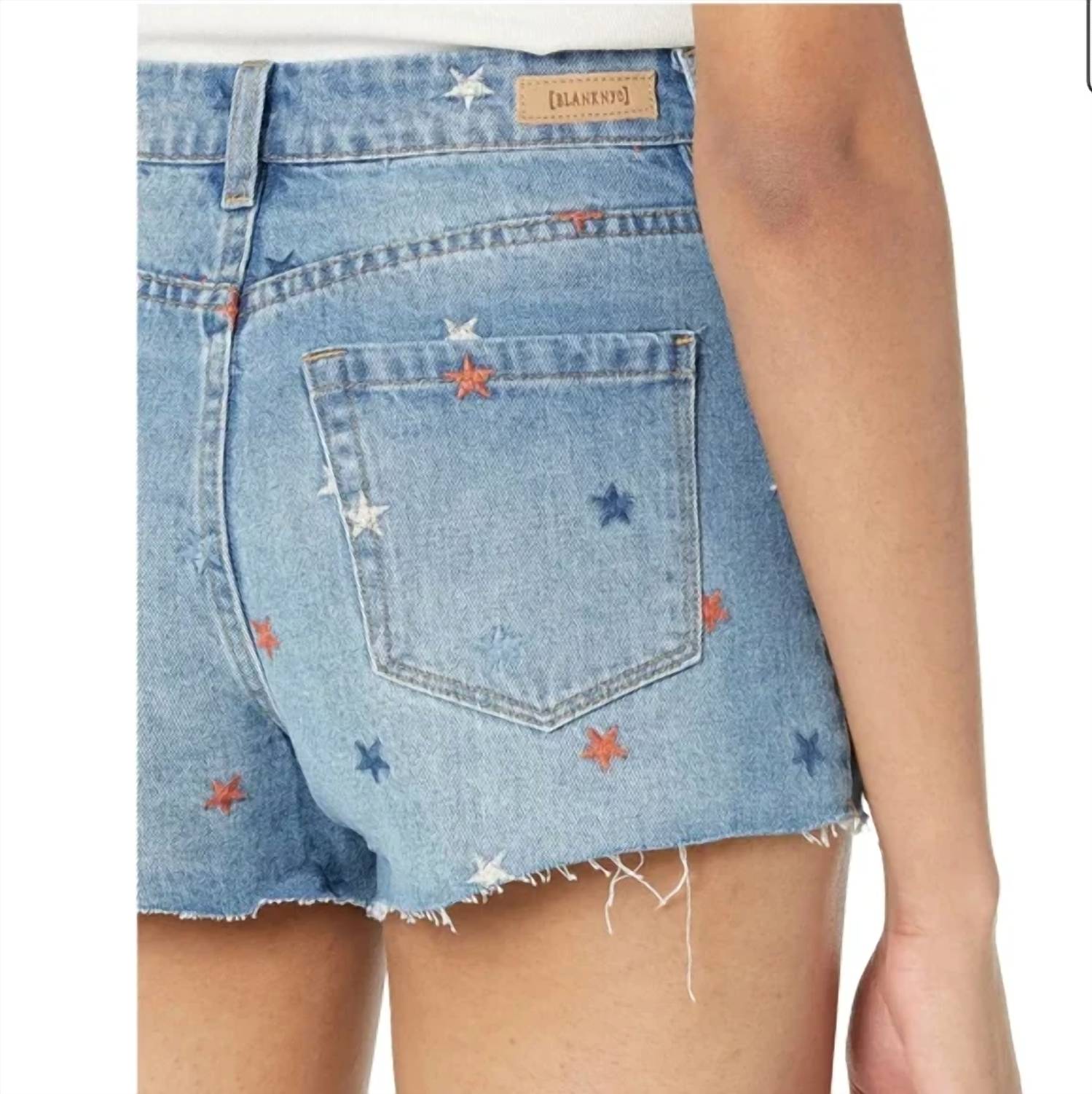Fit to perfection, we love these high-waist shorts and you will too. Blank NYC THE BARROW High Rise SHORT IN BORN IN THE USA Medium blue barrow vintage high rise denim short with star emboridery 100% Cotton