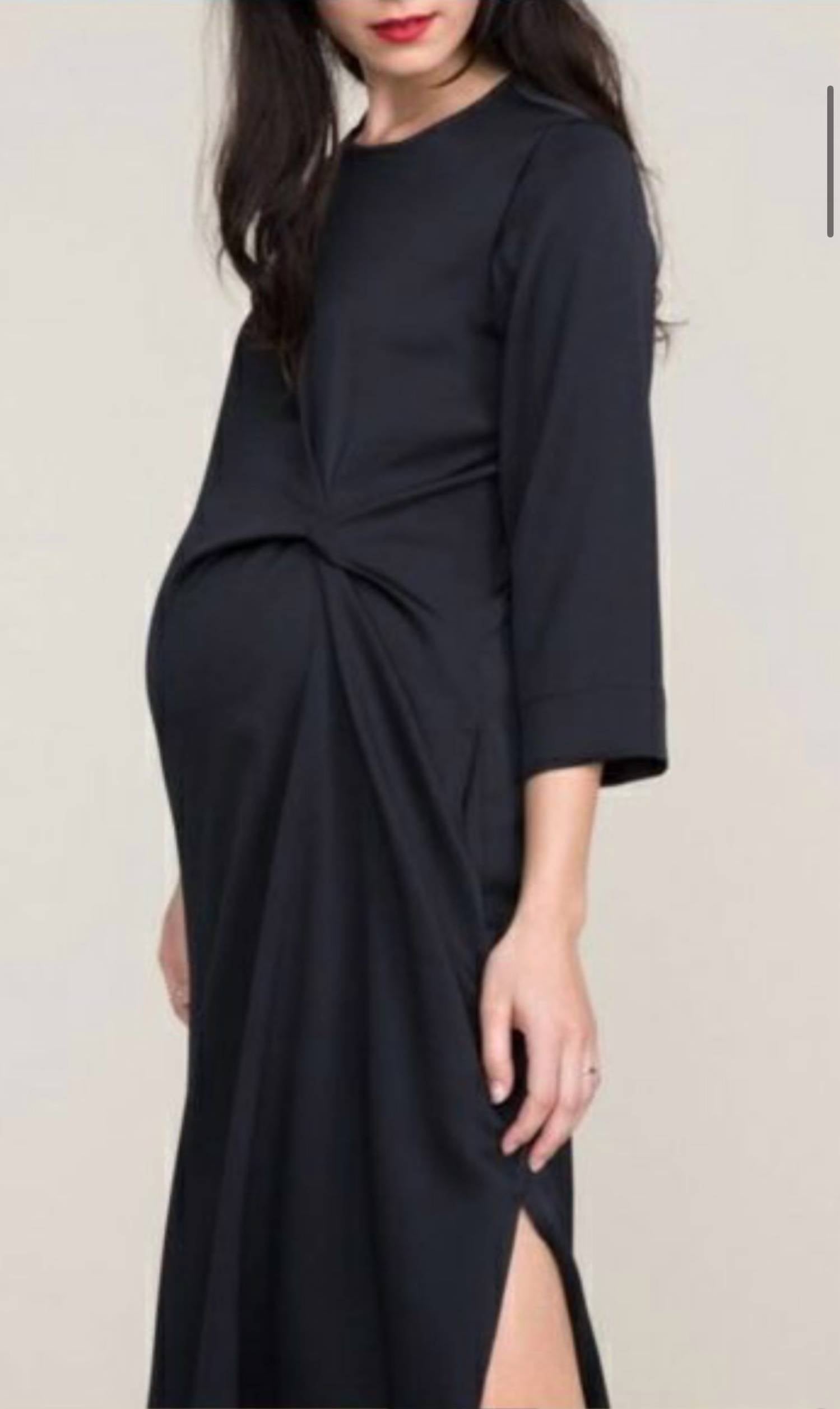 Just add slides or mules and you are good to go. Introducing the Hatch Maternity Lauren Dress in Navy/Pink Cheetah, a stunning piece for expectant mothers with an elegant scoopneck and three-quarter sleeves. Constructed from 100% polyester hammered satin, this midi dress showcases an A-line silhouette that flatters with side slits. Closure: Zip closure. Care: Hand wash. Feel confident at your next dinner party or Easter gathering, knowing you're adorned in minimalist, trend-forward fashion. Length: 43" (Size 0 and 1), 44" (Size 2). Bust: 19" (Size 0), 20" (Size 1), 21" (Size 2).