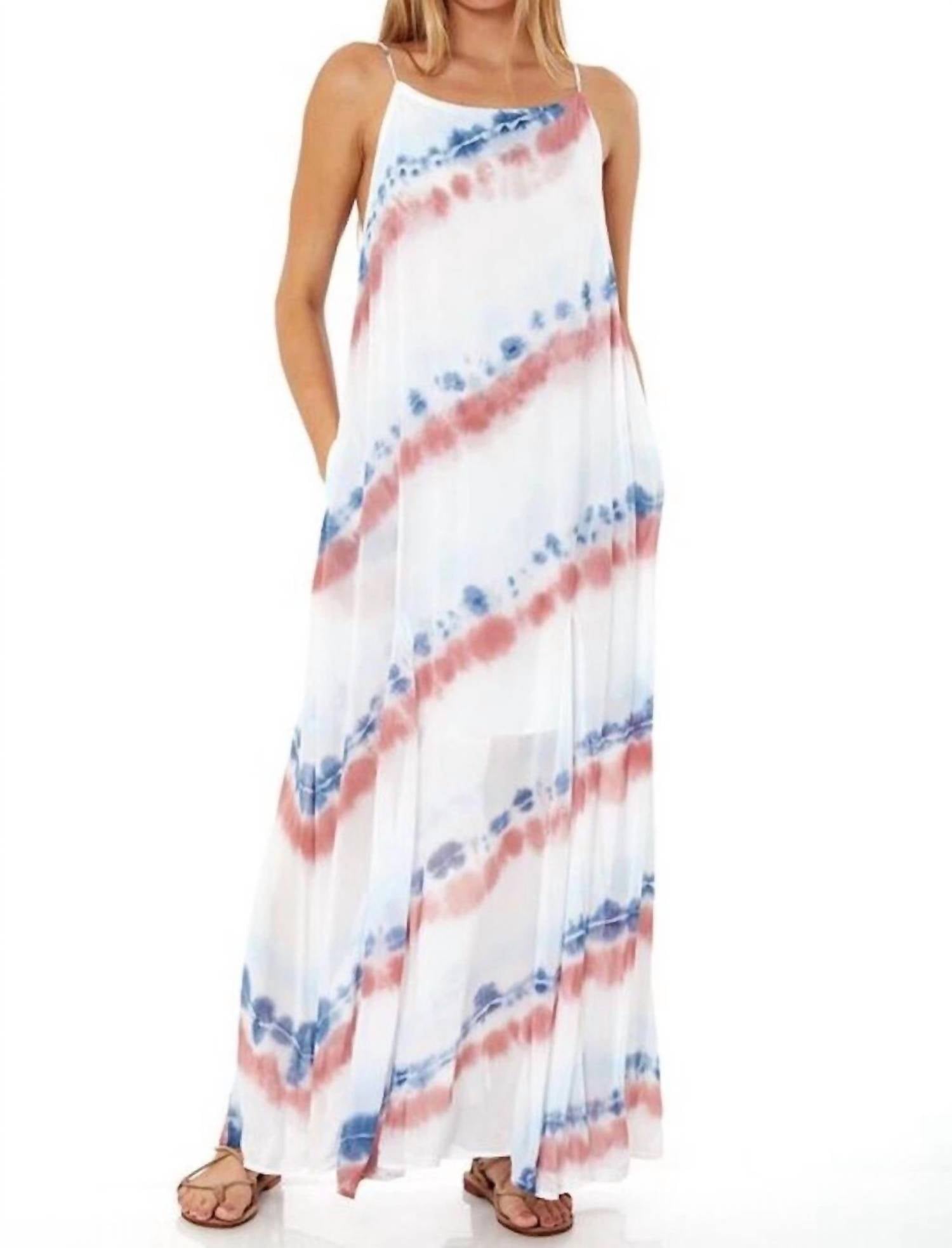 Style this maxi with your favorite statement necklace and sandals for the perfect look. Presenting the Elie Trapeze Maxi Dress by Young Fabulous & Broke, a stunning addition in a vibrant hue. Expertly crafted from 100% Viscose, this sleeveless sheath design features a flattering tie-dye pattern with convenient pockets. The dress offers a crewneck neckline and a pull-on closure for effortless wear. Care instructions recommend hand washing and line drying to maintain its luxurious feel.