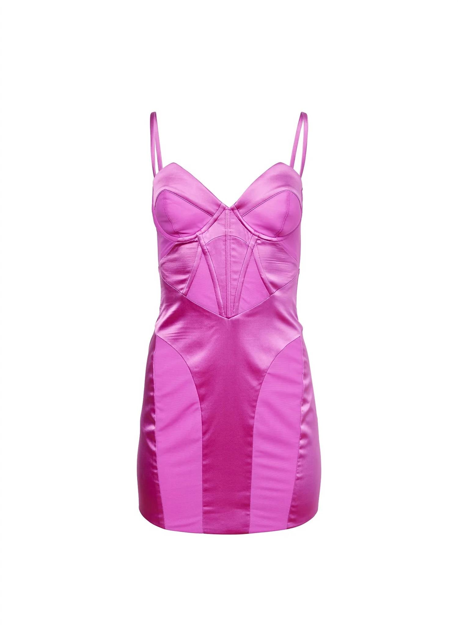 The chic, body-shaping Silk & Mesh Bustier Dress, cut from luxe silk and soft mesh with delicate boning to accentuate your figure. Features removable straps and sexy mini length. Self: 92% silk, 8% elastane. Contrast Fabric: 87% polyamide, 13% elastane. Made in China. Hand wash. Fully lined. Exposed back zipper closure. Removable and adjustable shoulder straps. Lightly padded underwire bust. Boned bodice