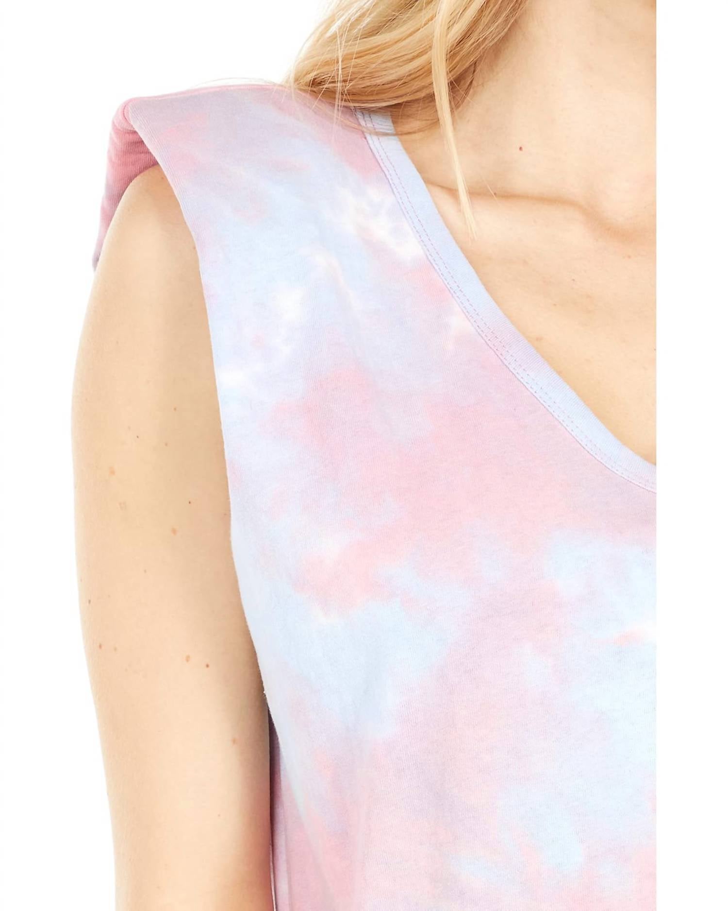 For those bright summer days, the [BLANKNYC]™ Tie-Dye Padded Shoulder V-Neck Tee will keep things cool and casual. With bright colors and a relaxed design, you'll be at home chilling on the beach or taking a stroll round town.