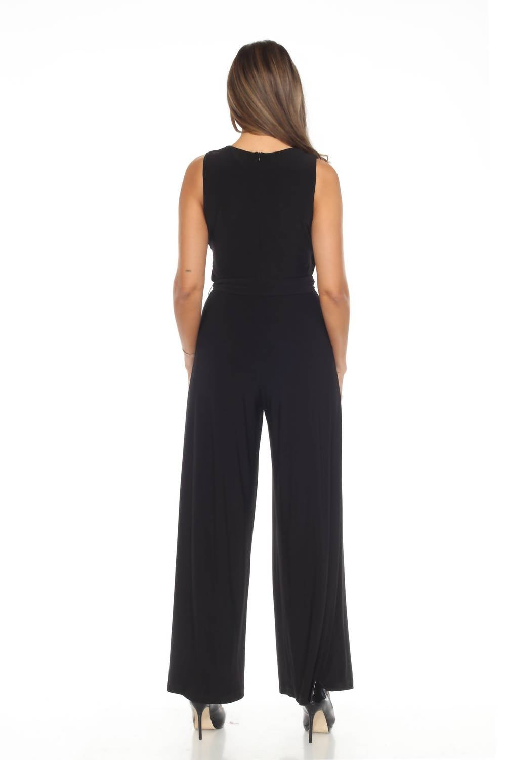 Joseph Ribkoff - Ruched Belted Sleeveless Wide Leg Jumpsuit