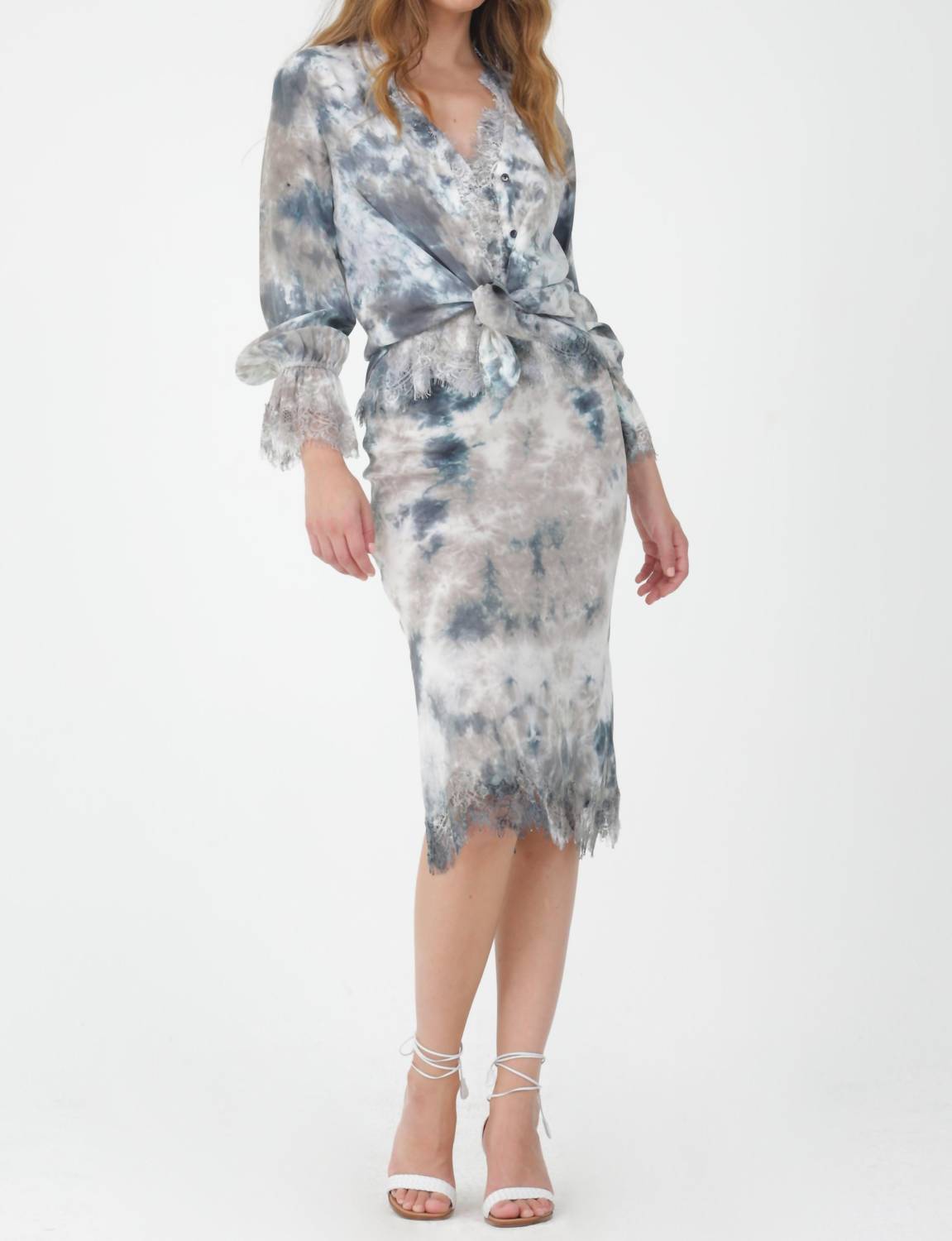 essential button front blouse in easy to mix and match signature Gold Hawk Tie Dye