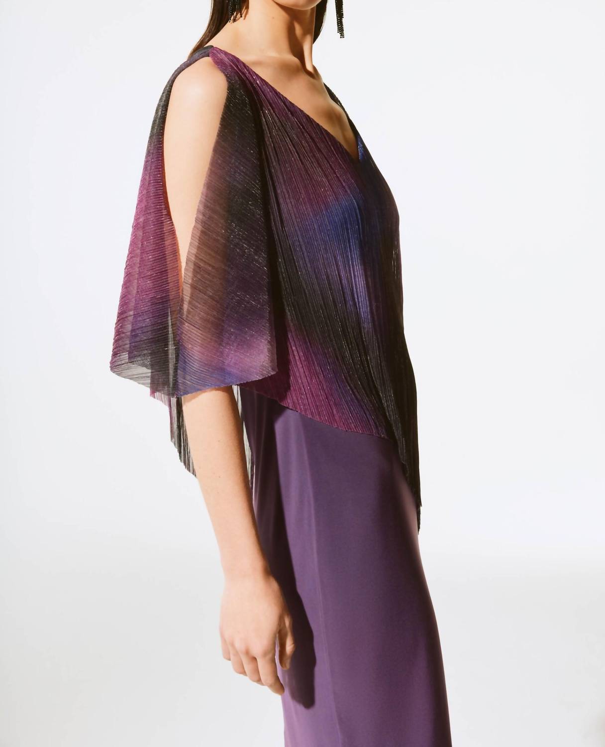 Joseph Ribkoff - Metallic Pleated Overlay Sheath Dress