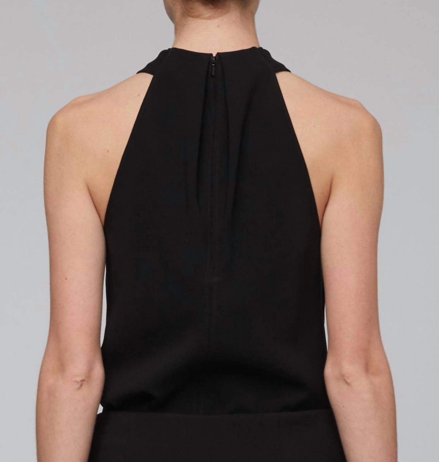 Fit, fabric and functionality. This tank top checks all the boxes. The Quinn Halter Top by A.L.C. is a chic addition to any minimalist wardrobe, designed in a solid black hue. It features a sleeveless silhouette with an overlapping halter neckline and a zip closure in the back, complemented by topstitch detailing. Crafted from 70% Triacetate and 30% Polyester, this top is imported and best maintained with dry cleaning. Perfectly tailored to fit true to size.