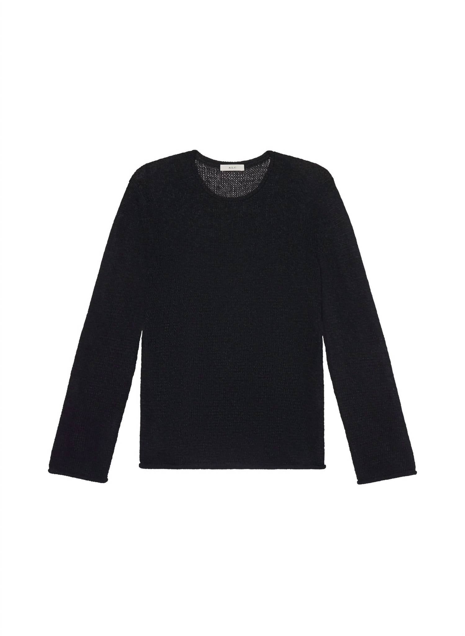 The ultimate go-to sweater, expertly crafted to provide the perfect combination of warmth and style. Its classic design and soft fabric make it a must-have addition to your wardrobe. Introducing the Ash Open Knit Sweater by A.L.C., crafted in a rich navy hue from a luxurious viscose blend renowned for its irregular texture and sheen. This women's crewneck sweater features long sleeves and a relaxed, semi-sheer silhouette, boasting a garment length of 25.5 inches. Designed to be pulled on for easy wear, it echoes artisanal hand-crafted techniques with a stylishly solid pattern. Care: Dry clean only. 65% Viscose, 35% Polyamide.