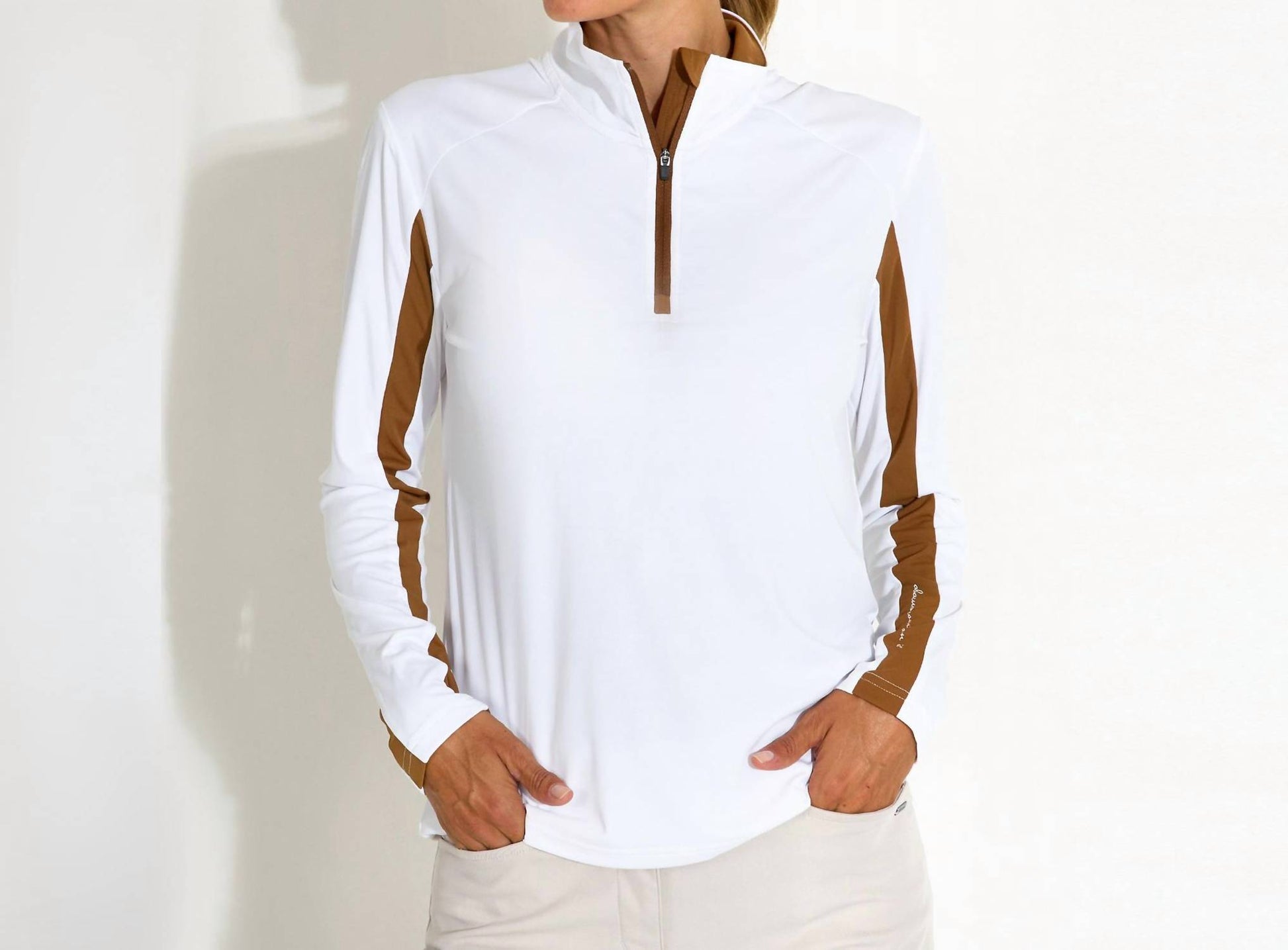 A long sleeve top you can wear with denim, skirts, well... just about anything! Experience superior sun protection with the Aloha UV Long Sleeve Pullover by Abacus Sportswear US, a perfect addition for your game day ensemble. This stylish cognac pullover features a mock neck design, long sleeves, and a pull-on closure, ensuring a streamlined fit. Crafted from high-density polyester, it offers enduring UPF 50 protection, breathable fabric, and a generous back length for added coverage. Care for this piece is a breeze with machine wash and tumble dry instructions.