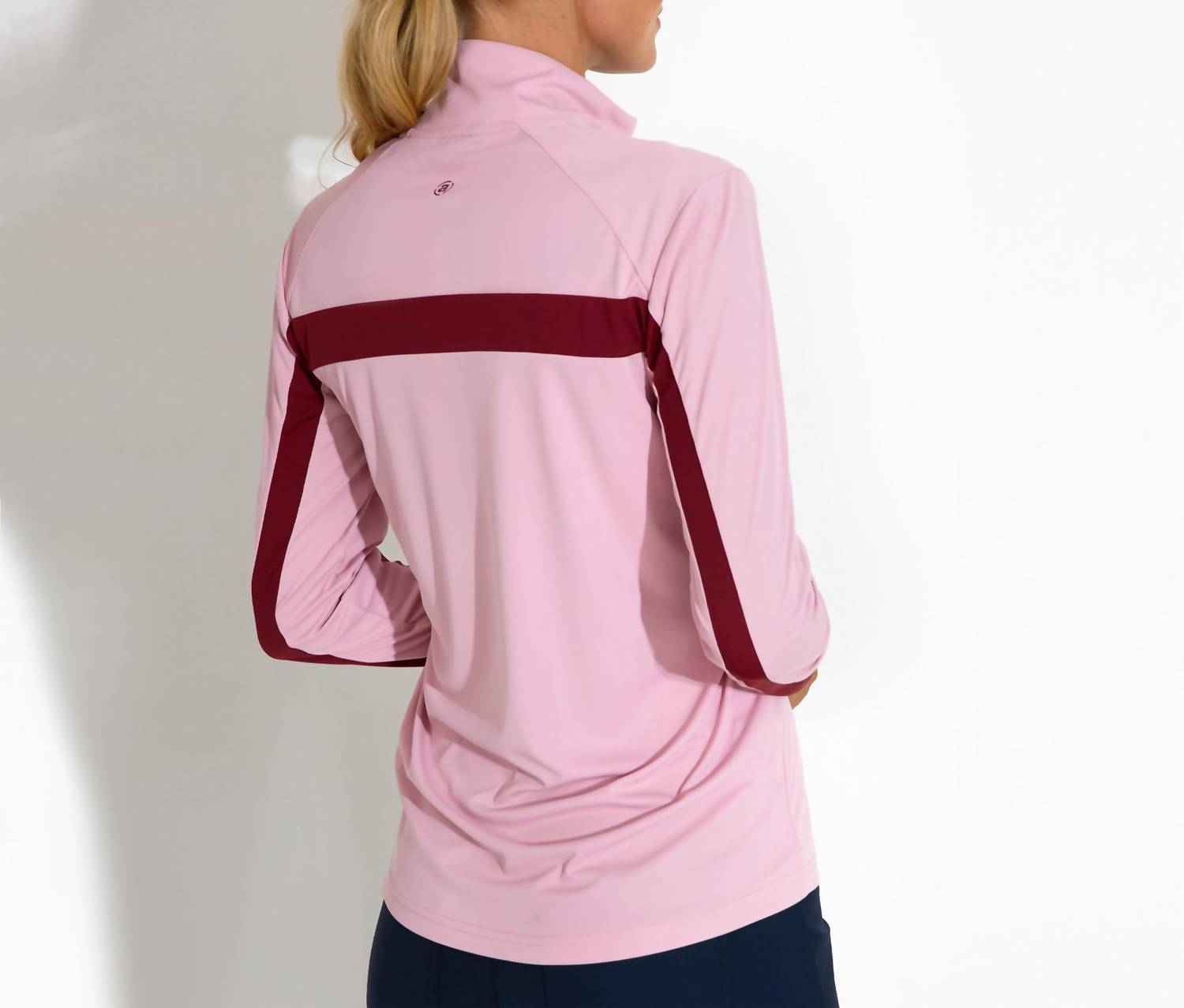 Great fit, cute design, soft fabric. You'll love everything about this long sleeve tee. Introducing the Aloha UV Long Sleeve Pullover by Abacus Sportswear US, designed for ultimate sun protection on the golf course. This dusty pink, long sleeve top features a mockneck with a convenient zip closure and a stylish contrast stripe detail. Made from high-quality polyester, it provides a long-lasting UPF 50 level of protection without the use of chemicals. Care is effortless with machine wash and tumble dry instructions, making it a perfect addition to your spring athleisure wardrobe.