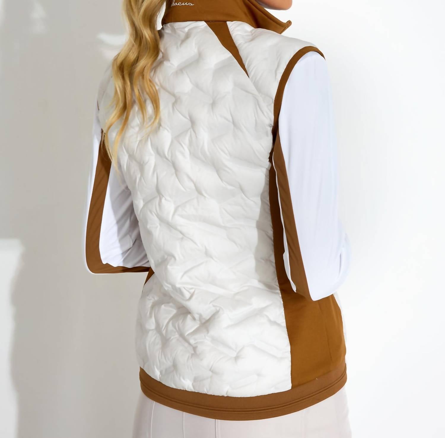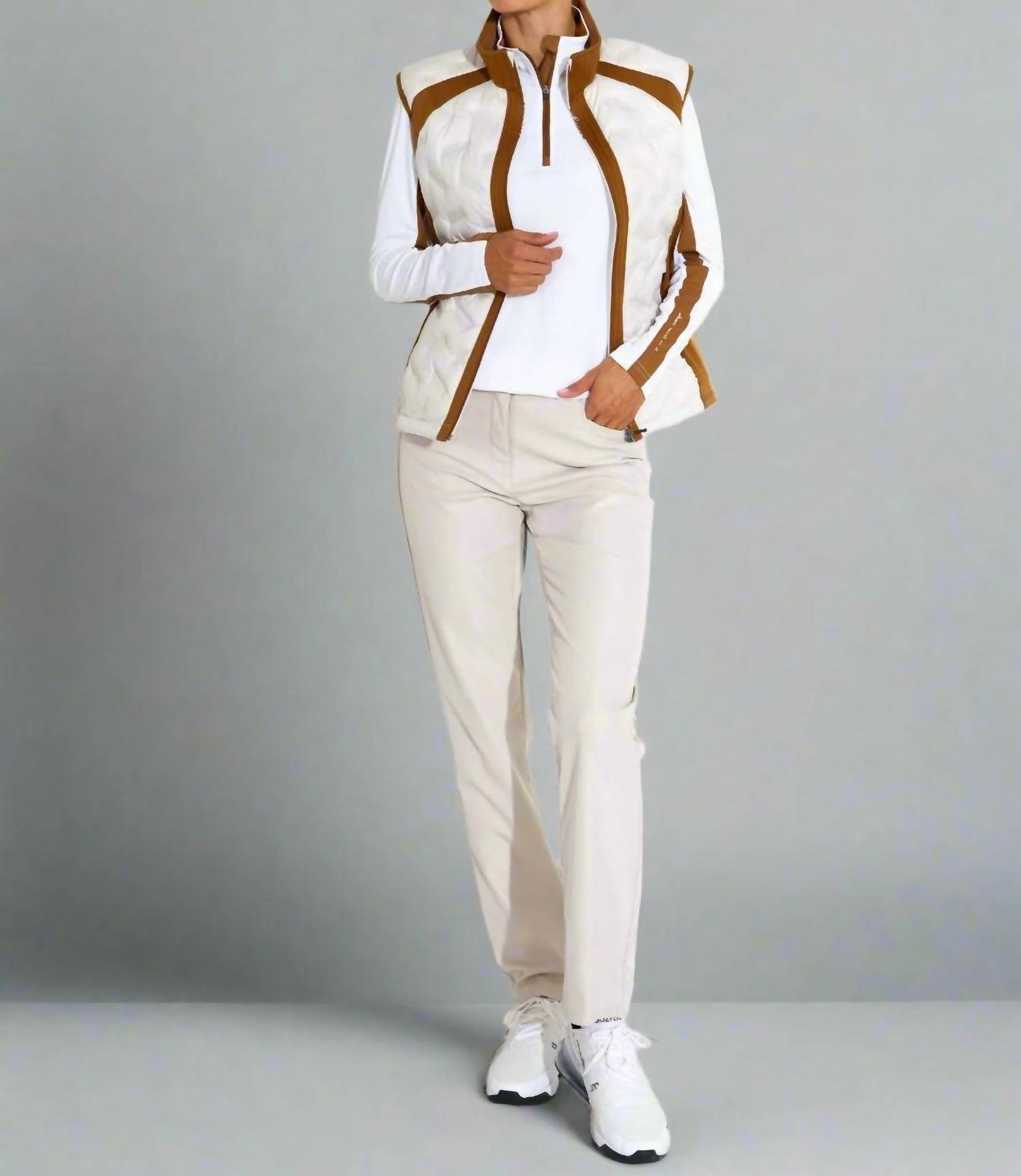 Throw this vest over an all black outfit for a perfectly polished look. Introducing the Portrush Hybrid Vest by Abacus Sportswear in a stylish cognac hue, perfect for game day and athleisure trends. This sleeveless vest is crafted from windproof polyester for lightweight warmth and enhanced mobility, featuring strategically placed stretch fleece side panels. Designed with a practical full zip closure, it includes two zippered front pockets for secure storage. For easy care, machine wash and tumble dry as needed.