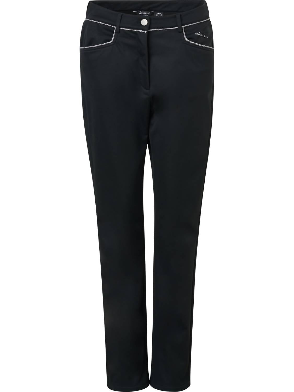 Discover the Druids Windproof Trousers by Abacus Sportswear US, expertly designed for women in solid black. Crafted from a stretchable, breathable Polyester softshell, these trousers are water repellent with a brushed inside for warmth. They feature a regular fit with a straight leg and mid-rise waist, complemented by both front and back pockets and contrast pipings. Closure is secured with a zipper and button, providing both style and functionality. Easy to care for, simply machine wash and tumble dry. Perfect for Game Day occasions in the spring season.
