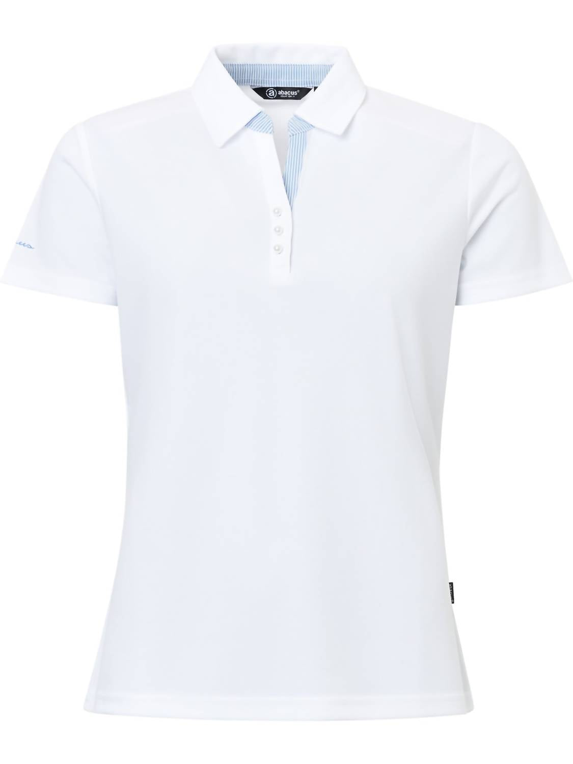 This classic, short sleeve tee will be your go-to staple this season and beyond. Presenting the Bovey Drycool Short Sleeve Polo by Abacus Sportswear US, a blend of sustainability and style in crisp white. Crafted from soft, recycled polyester pique, this polo offers high stretchability and features Drycool and wicking functions for maximum comfort. Its design is highlighted by a classic cut-and-sewn collar, a V-neck with a striped contrast, and a button placket adorned with three pearl buttons. Care: Machine wash and tumble dry.