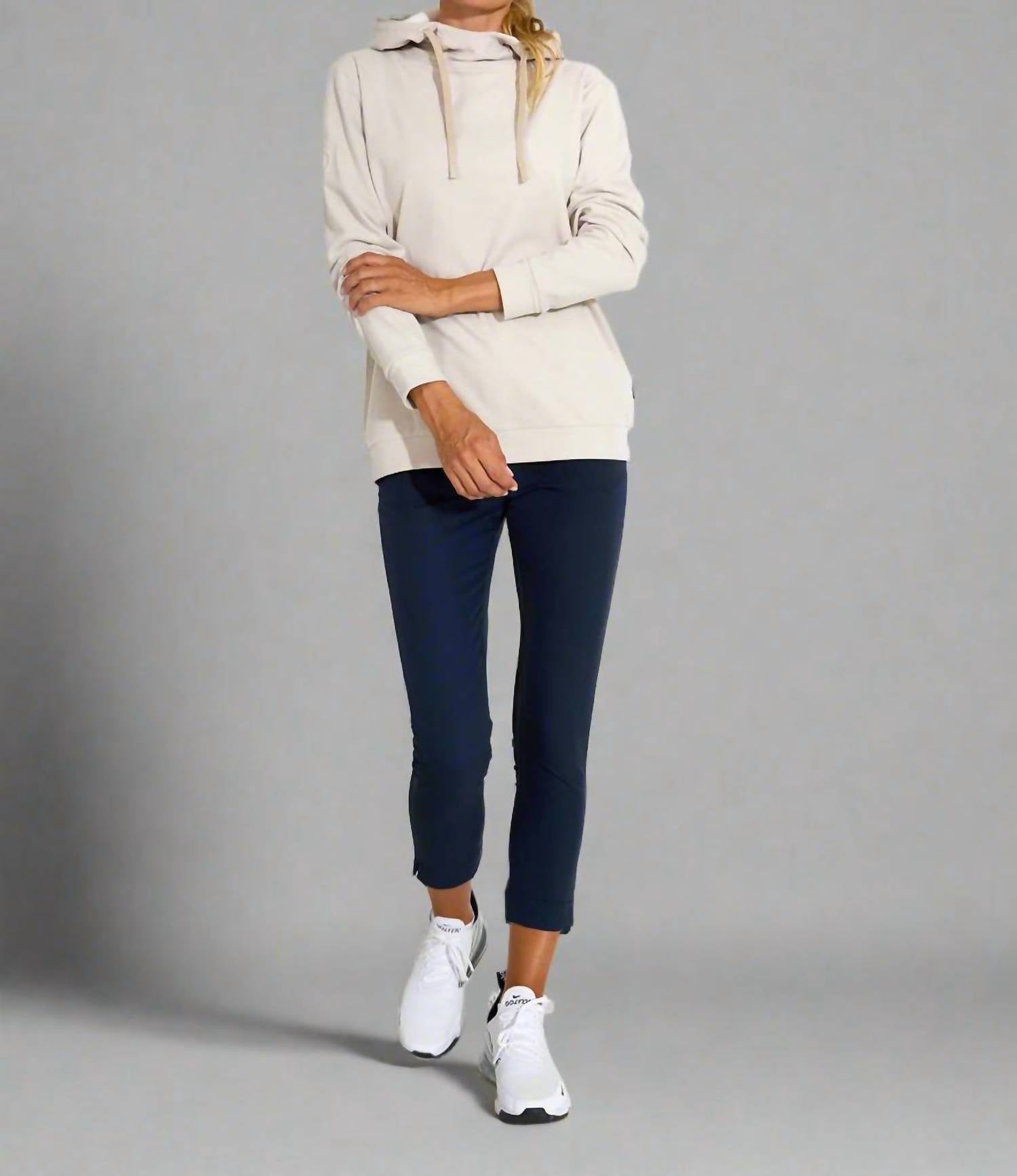 Whether you're running around town or lounging at home, this sweatshirt works for both. Elevate your athleisure wardrobe with the Banff Fleece Hoodie by Abacus Sportswear US, designed for both comfort and style. This women’s long sleeve hoodie in a tranquil clam hue is crafted from soft, double-brushed fleece, offering warmth and stretchability. The adjustable drawstring hood and ribbed cuffs ensure a snug fit, while maintaining breathability with moisture-wicking properties. Closure Type: Pull On. Care Instructions: Machine wash and tumble dry.