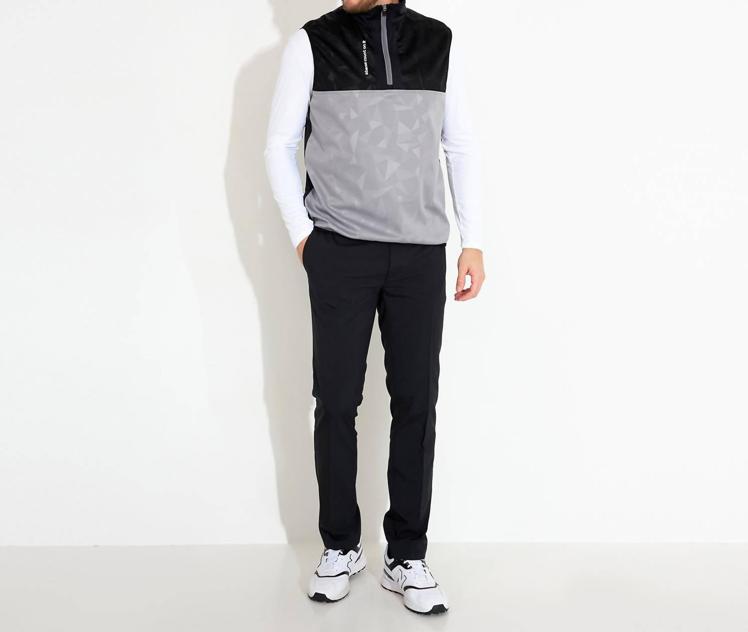 Elevate your game day look with the Kingsbarn Hybrid Vest by Abacus Sportswear US, an ideal piece for mild, breezy weather. This sleeveless vest boasts a unique combination of grey softshell and fleece materials, with a windproof and water-repellent softshell front featuring a stylish triangle pattern. Originating from a PFC-free production process, it includes a practical zip closure and two side pockets. Care instructions recommend machine wash and tumble dry for effortless maintenance.