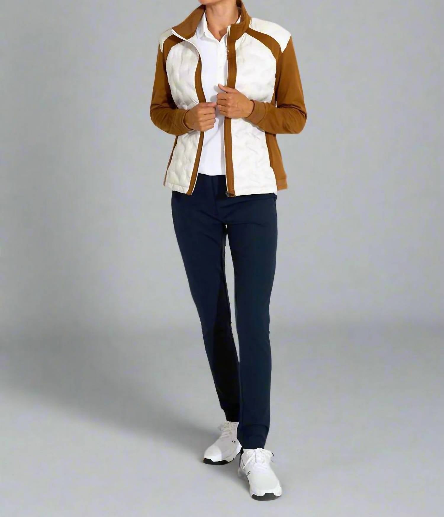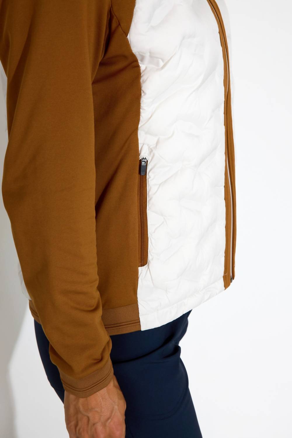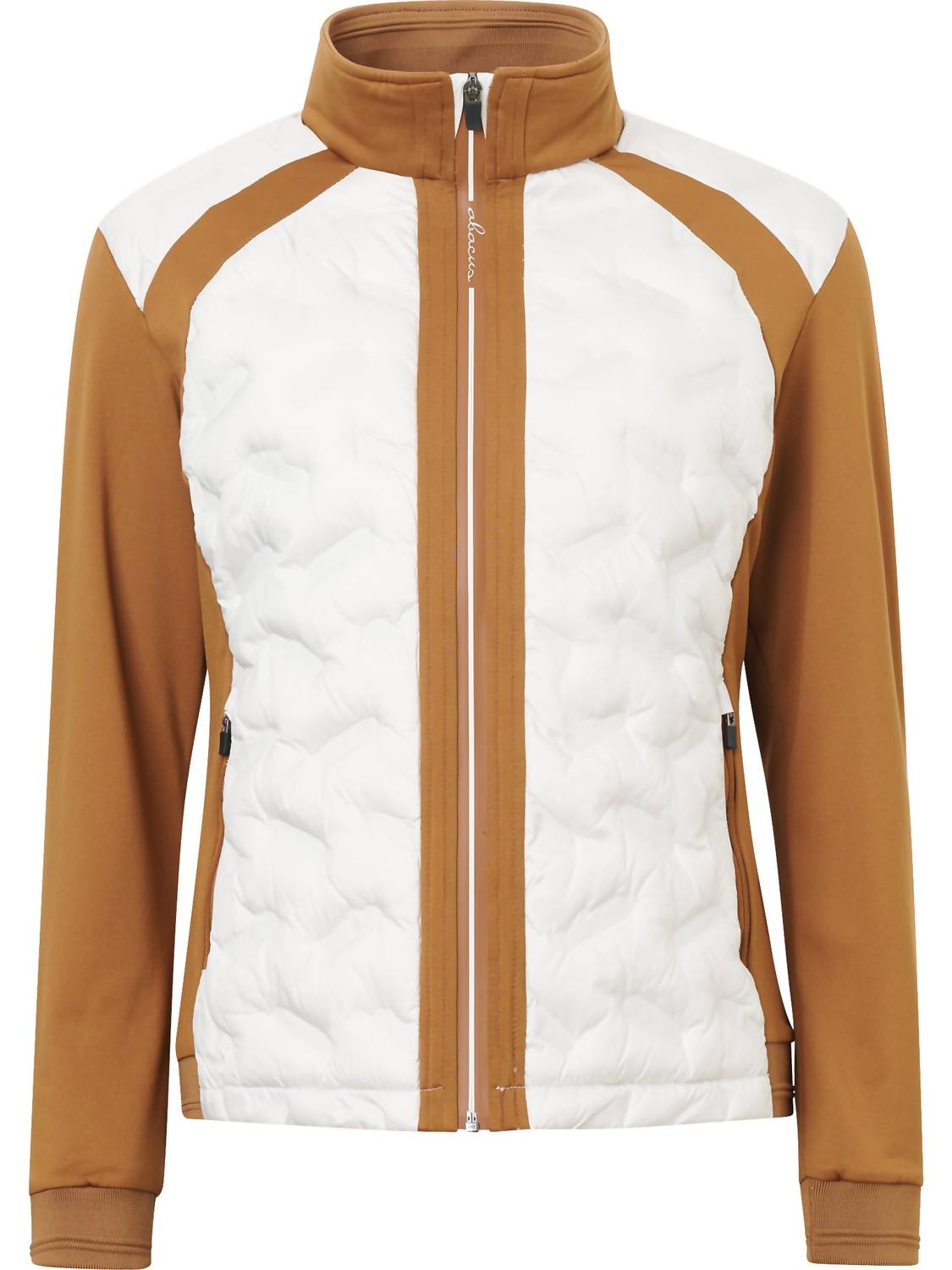 The coolest, most versatile utility jacket. Match it with your favorite pair of denim or throw it over any day dress. Introducing the Portrush Hybrid Full Zip Jacket by Abacus Sportswear US, a stylish and functional piece perfect for travel and outdoor activities. Designed with long sleeves and a solid Cognac color, the jacket offers a seamless quilted windproof fabric with strategic padding for warmth and mobility. Made from durable and easy-care nylon, it features a full zip closure and convenient side zip pockets for practicality. Care instructions include machine wash and tumble dry, ensuring your jacket is always ready for your next adventure.