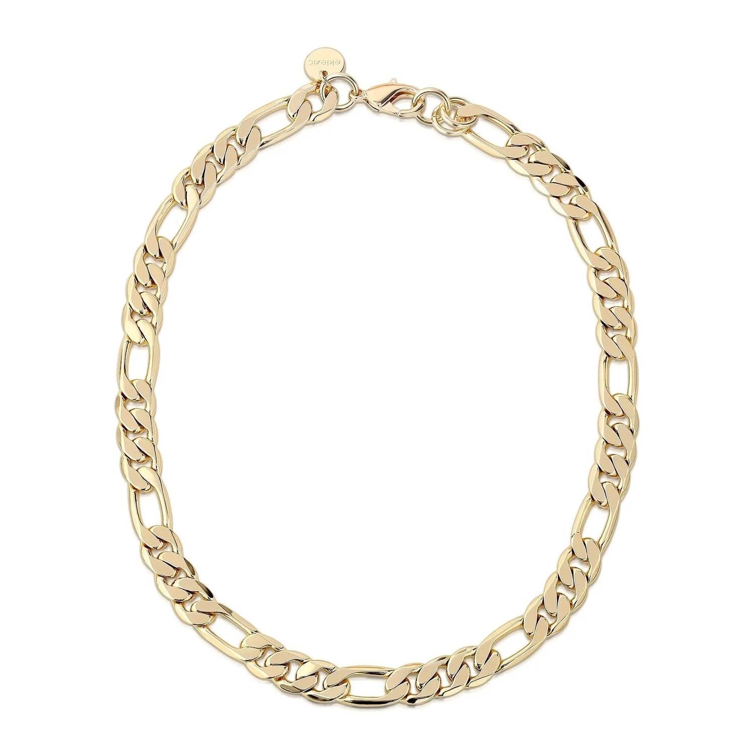 Fusion of bold style and conscious craft. Handcrafted in US. Made from durable recycled brass, plated with 14K Gold and finished with a clear protective coating. Features a secure lobster clasp, with chain widths of 10.16mm and clasp length of 19mm. Offers a perfect fit for anyone's style.