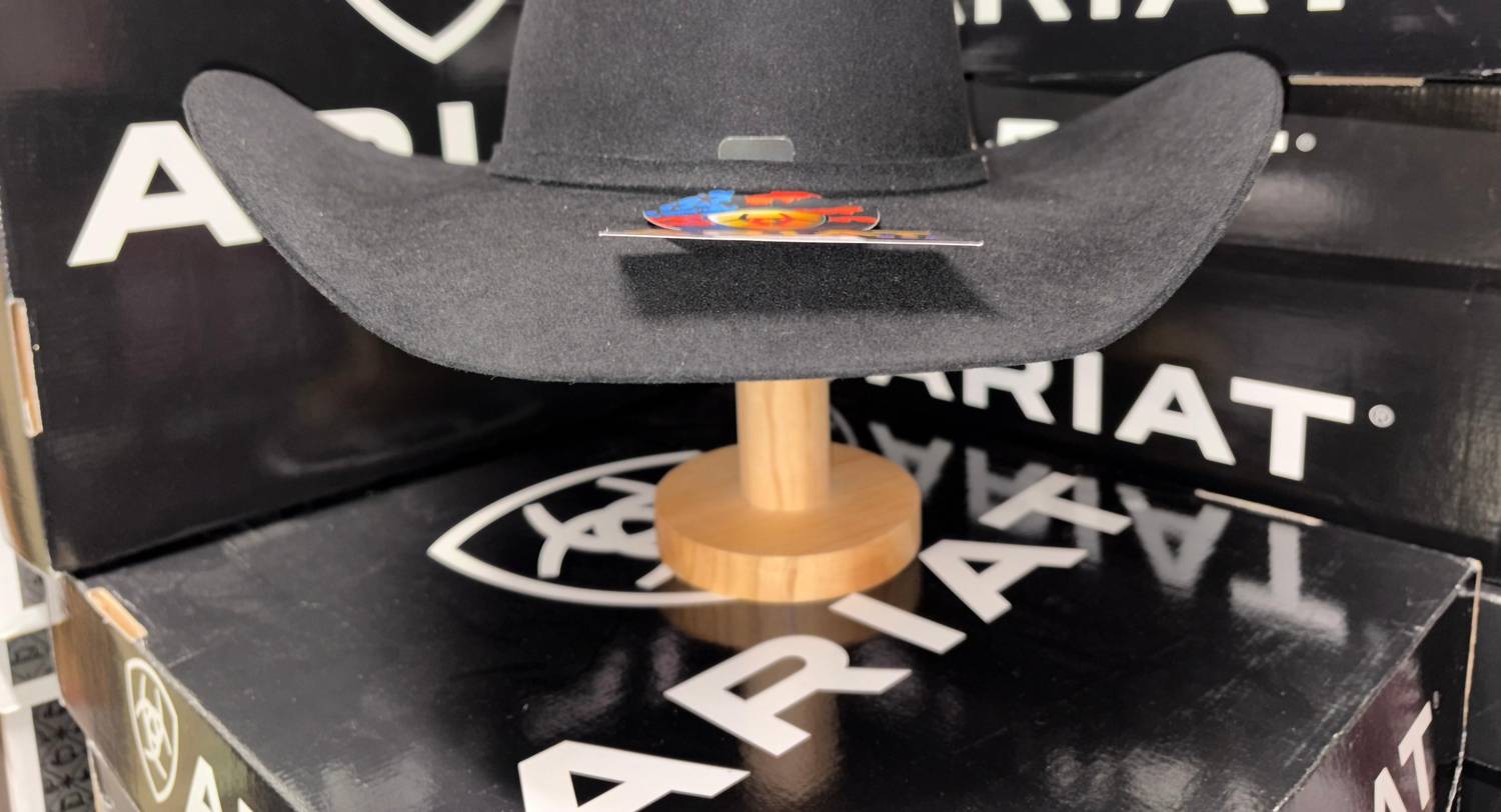 Discover the Ranchers Crown Western Hat by ARIAT, a luxurious statement piece in classic black. This hat is crafted from a premium blend of beaver and rabbit fur, featuring a genuine sheepskin sweatband for ultimate comfort. Its beautiful black Italian silk lining adds a touch of elegance, and each hat is individually boxed for special care. Proudly made in the USA, it boasts a crown and brim both measuring 4-1/4 inches.
