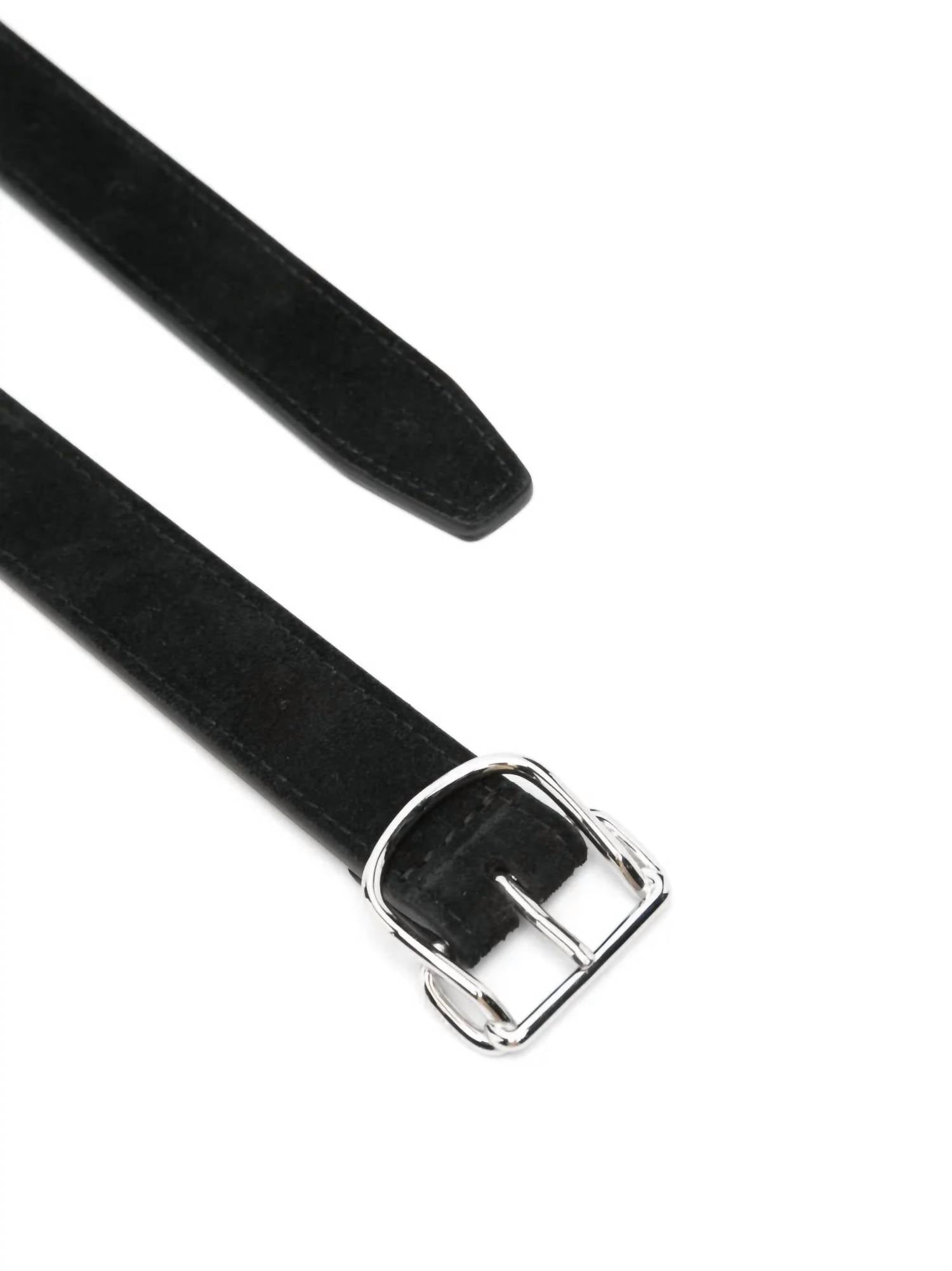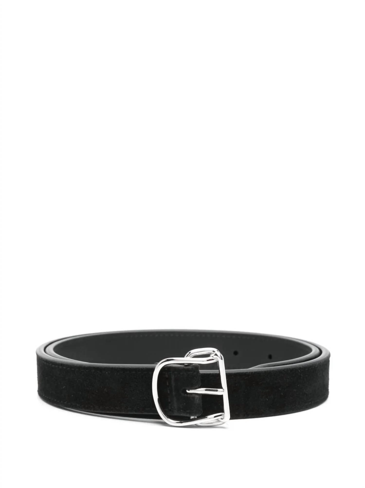 Accentuate your wardrobe with this stylish women's belt, expertly designed to offer a perfect balance of fashion and function. Besides, you can never have too many belts, right? Introducing the Women's Swirl Suede Belt by TOTEME, a luxurious accessory crafted in Italy. This elegant belt comes in classic black and features a striking silver-tone metal buckle inspired by Swirl jewelry. Composition: 100% cow leather with a matching leather lining for durability and style. It measures 2.5cm/0.9in in width, adding a sleek touch to any ensemble.