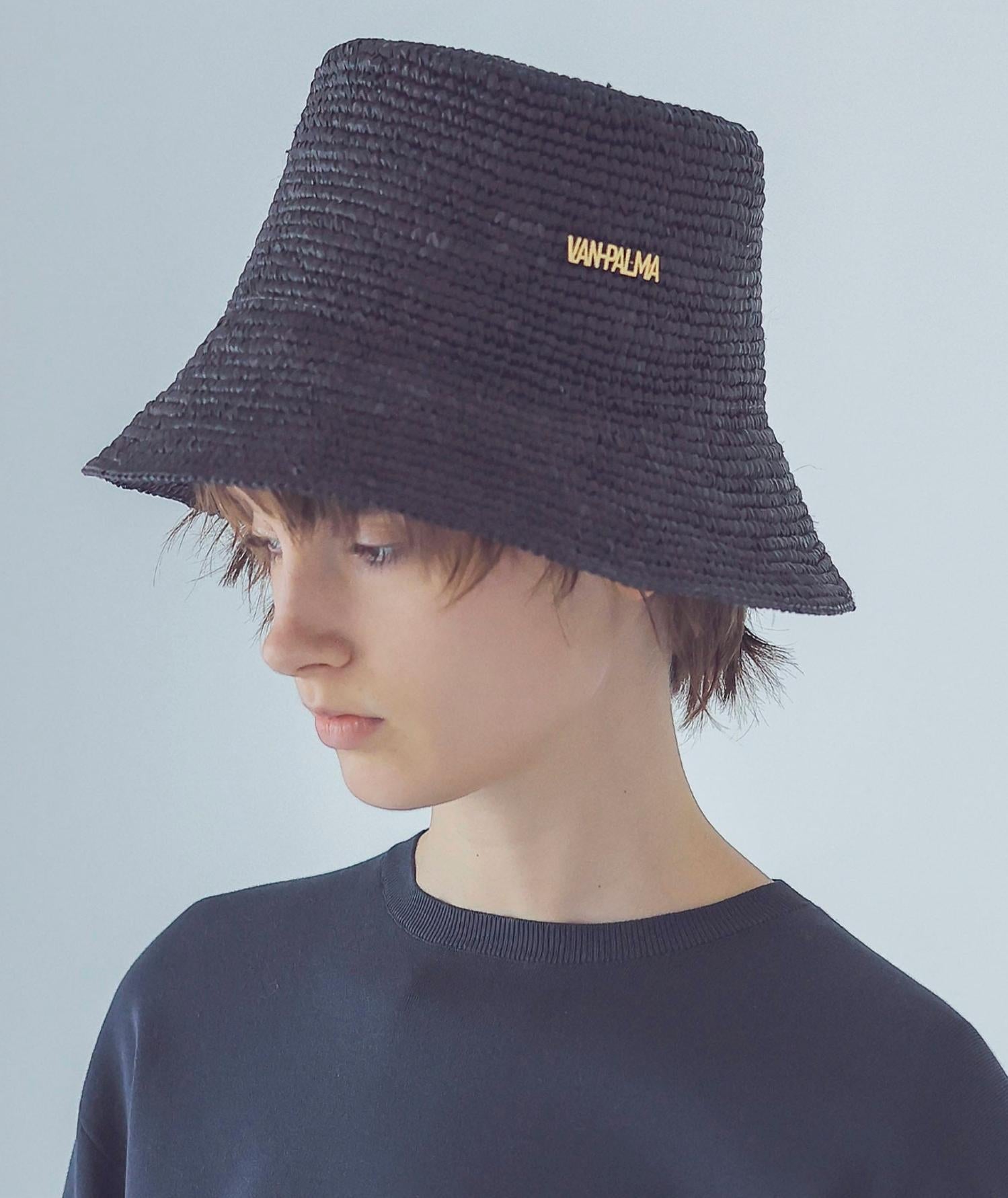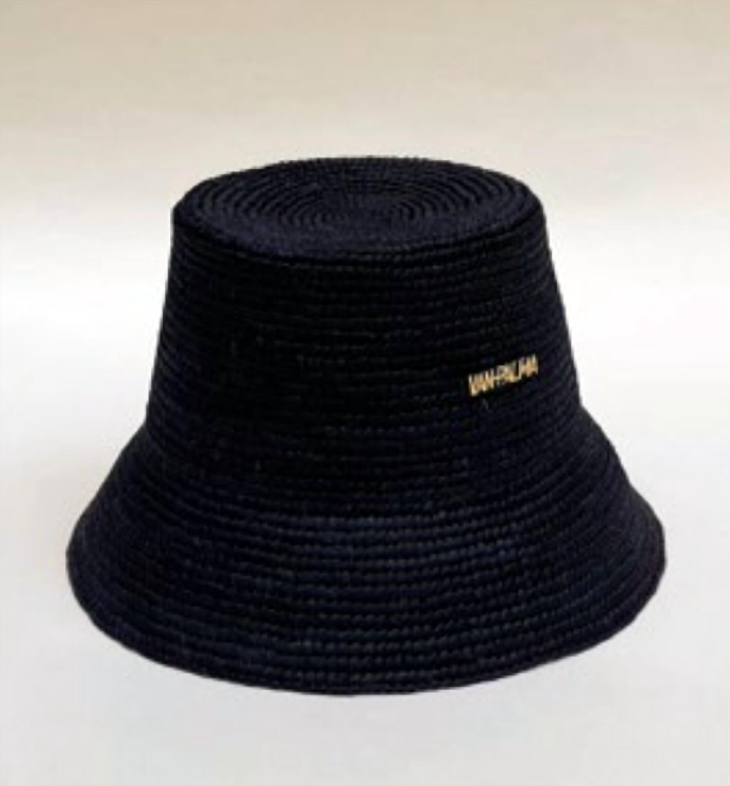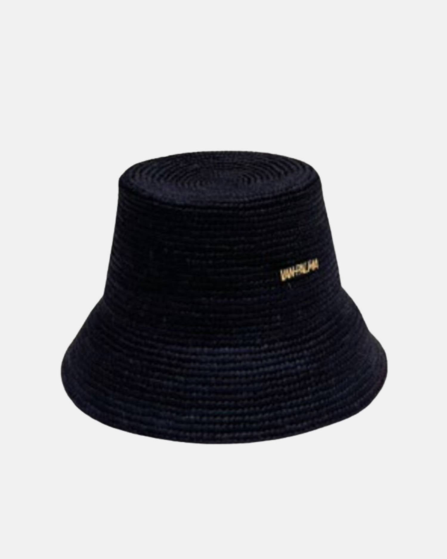 Block the sun in style with this adorable hat that will complement any outfit. Expertly crafted to elevate your style while providing a delightful touch of personality. Elevate your accessory collection with the Women's Gina Hat by Van Palma, a chic straw bucket hat in classic black. Crafted from 100% toquilla straw and custom made in Marseille, France, it features a gold logo plate brooch for a touch of elegance. This versatile piece is perfect for both daily wear and resort vacations. Enhance your look with this timeless and luxurious accessory.