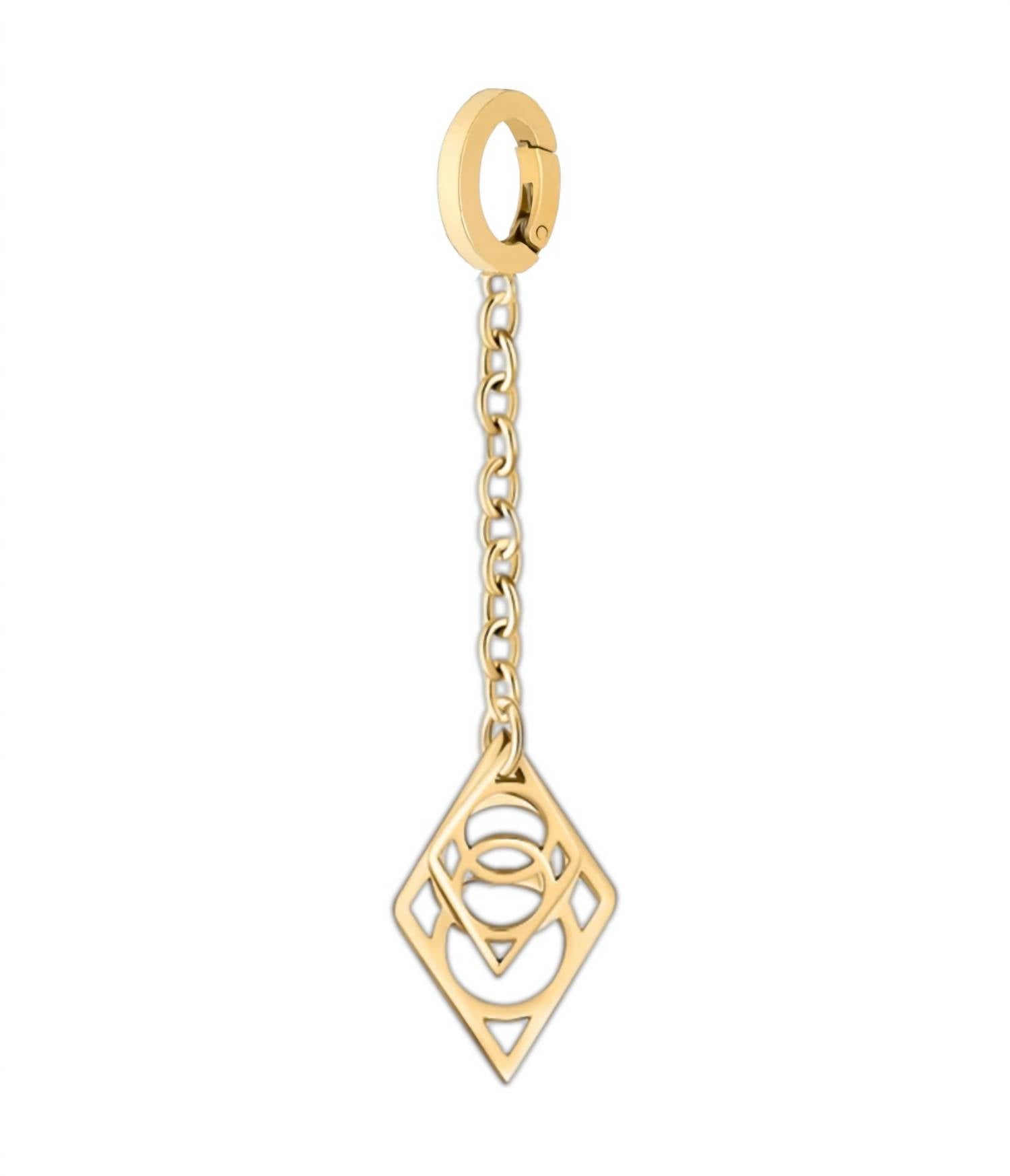 The perfect belt can really tie an outfit together and this one is no exception. Classic in its design and built to last, this belt can complement any outfit. Elevate your style with the Women's Emblem Memento Charm by Dorne, crafted in stunning 18K yellow gold PVD-coated stainless steel. This memento measures approximately 55.9mm in length, offering a sleek and contemporary aesthetic. Its innovative triggerless clasp seamlessly clips to Bonds, allowing for easy integration with any swimsuit. Experience the waterproof, tarnish-proof, and hypo-allergenic benefits, backed by a lifetime warranty.