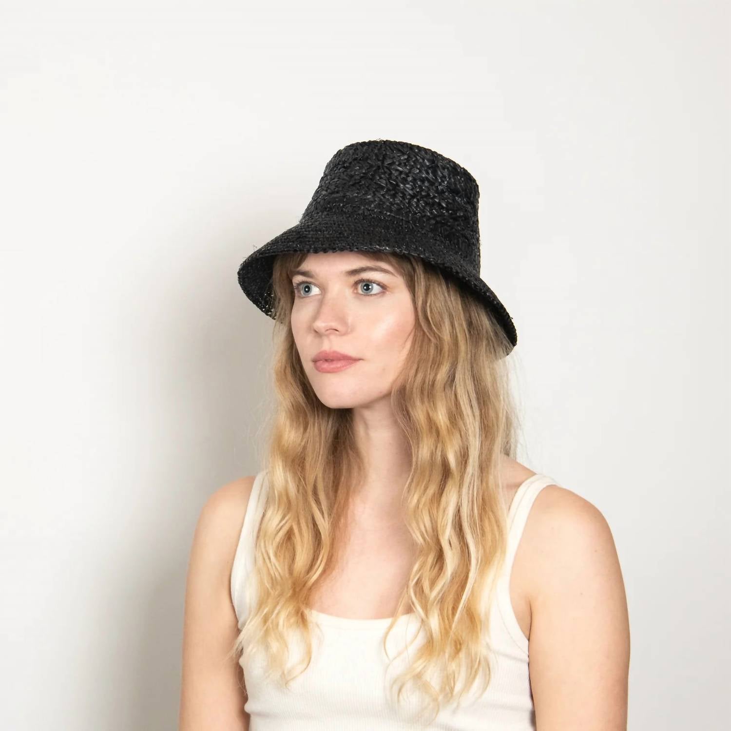 Turn heads in this stylish and chic hat. Not only is this accessory a must for keeping the sun out of your face, it will also be the perfect complement to any cute warm-weather outfit. Introducing the WYETH Fina Bucket Hat in sleek black, expertly crafted from 100% raffia with a mixed pattern weave and crochet for a stylish finish. This unlined hat features materials with UPF 50+, offering superior protection by blocking 98% of UVA and UVB rays. Its 3.25-inch brim and 4-inch crown provide ample coverage, while the foldable and packable design ensures easy portability. The hat comes in a one-size-fits-most (57cm) with a velcro size adjuster for a customizable fit, making it an ideal companion for sun-drenched days.