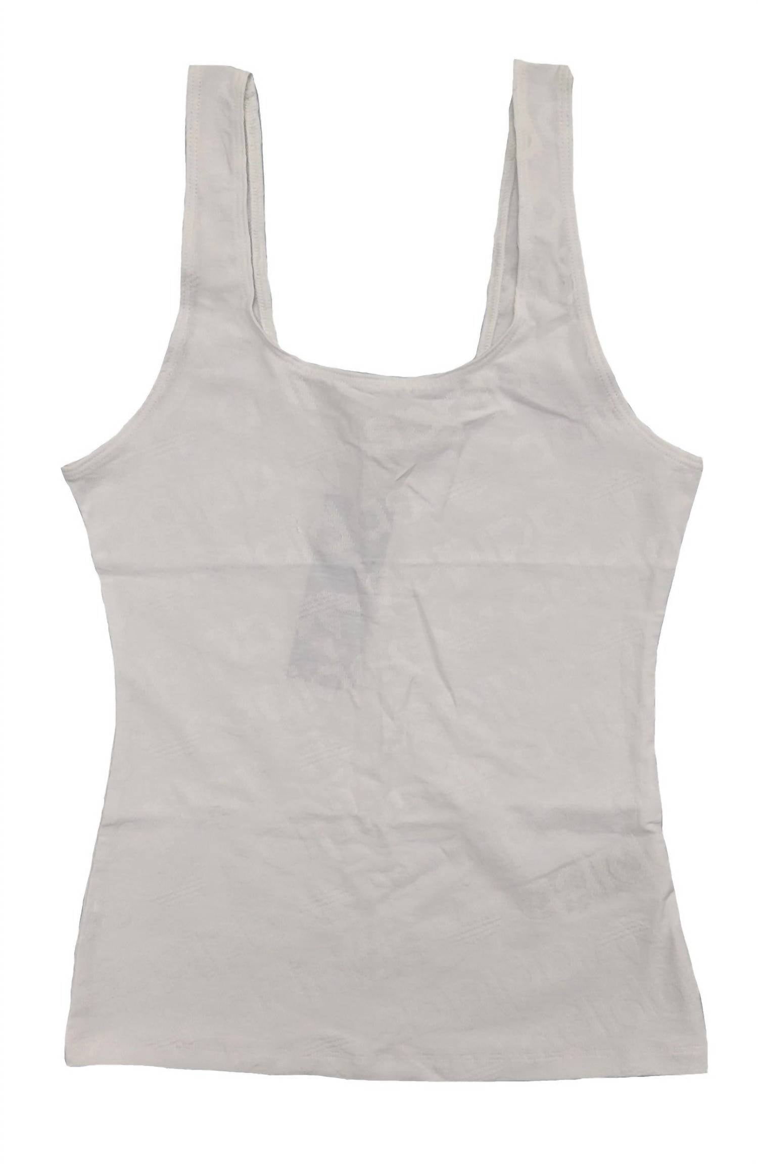 This classic tank top is perfect for layering and cute enough to wear on its own. Knit fabrication. Scoop neckline. Sleeveless. Lightweight. U-back. Allover logo. Pullover construction. Cotton/spandex. Machine wash. 4A3H69