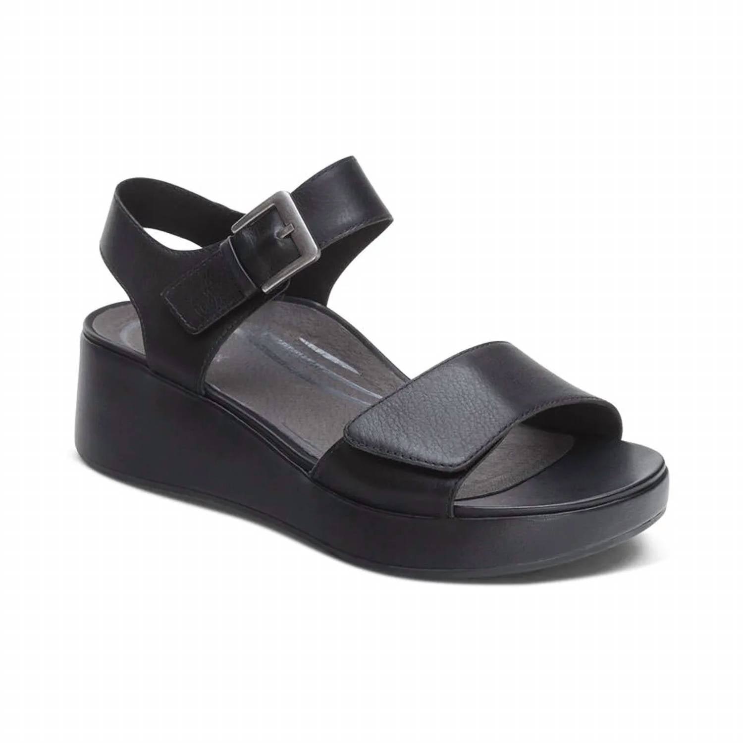 Classicly cute and all-day-wearable. We love this sandal. The Ariel Wedge offers a perfect combination of style and ease. Featuring adjustable quarter straps with hook & loop closures, these sandals offer a secure and personalized fit. The leather-wrapped wedge and footbed add a touch of elegance. Adjustability: Hook & loop closures Adjustable quarter strap Upper Material: Leather Outsole Material: Blown rubber for lightweight comfort Removable Insole: No Heel Height: 1.5"