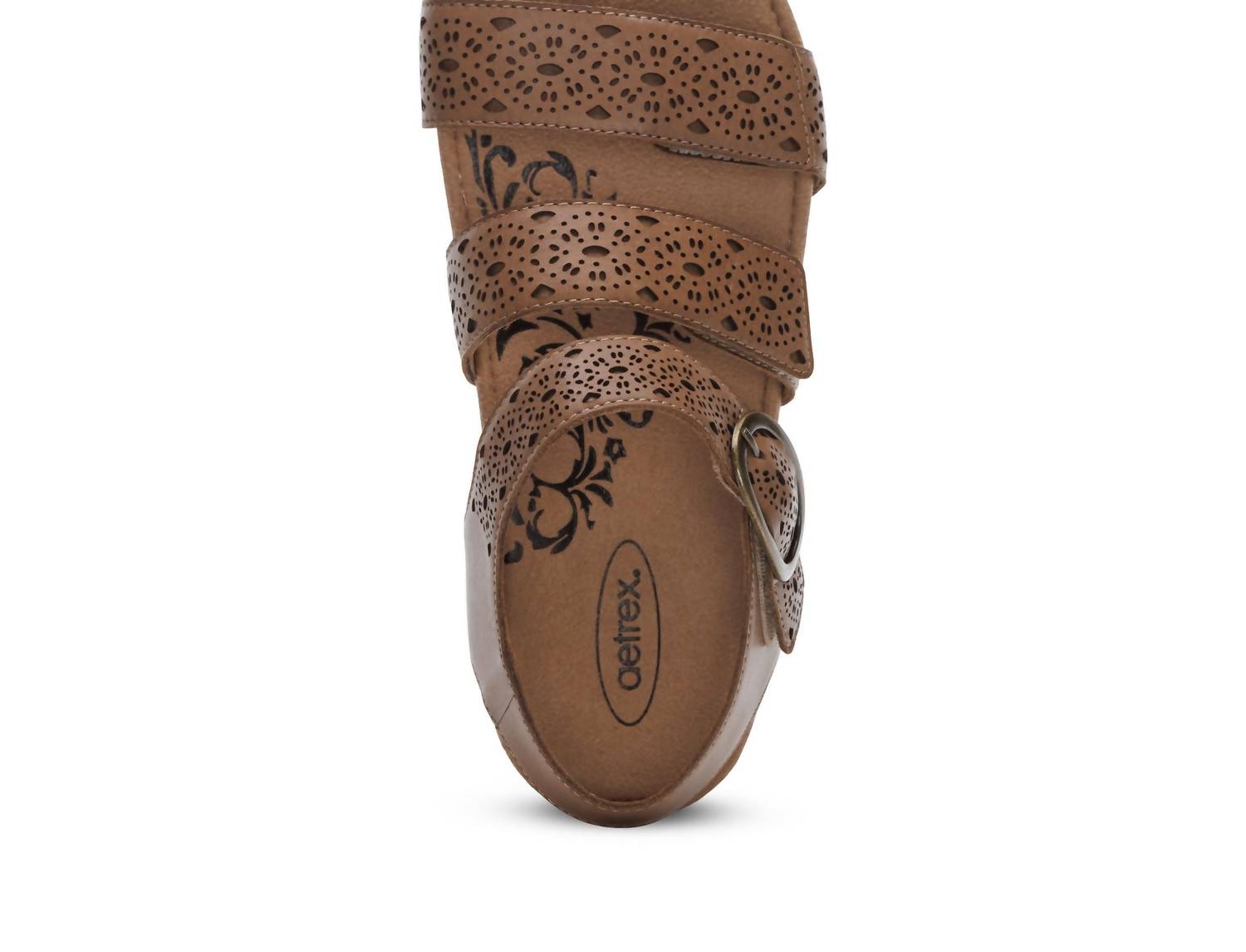 Flowy dresses, cropped pants, and even jumpsuits... this sandal works with them all! Discover the Lilly Cutout Sandals by Aetrex, the perfect blend of style and comfort for your summer vacations. Designed in a sophisticated taupe, these women's sandals feature an open toe and flat heel, ideal for long strolls in the sun. Whether you're exploring a new city or relaxing by the beach, these sandals are a chic and practical choice for any warm-weather occasion. Aetrex excels in crafting footwear that's both functional and fashionable, ensuring you step out in confidence.