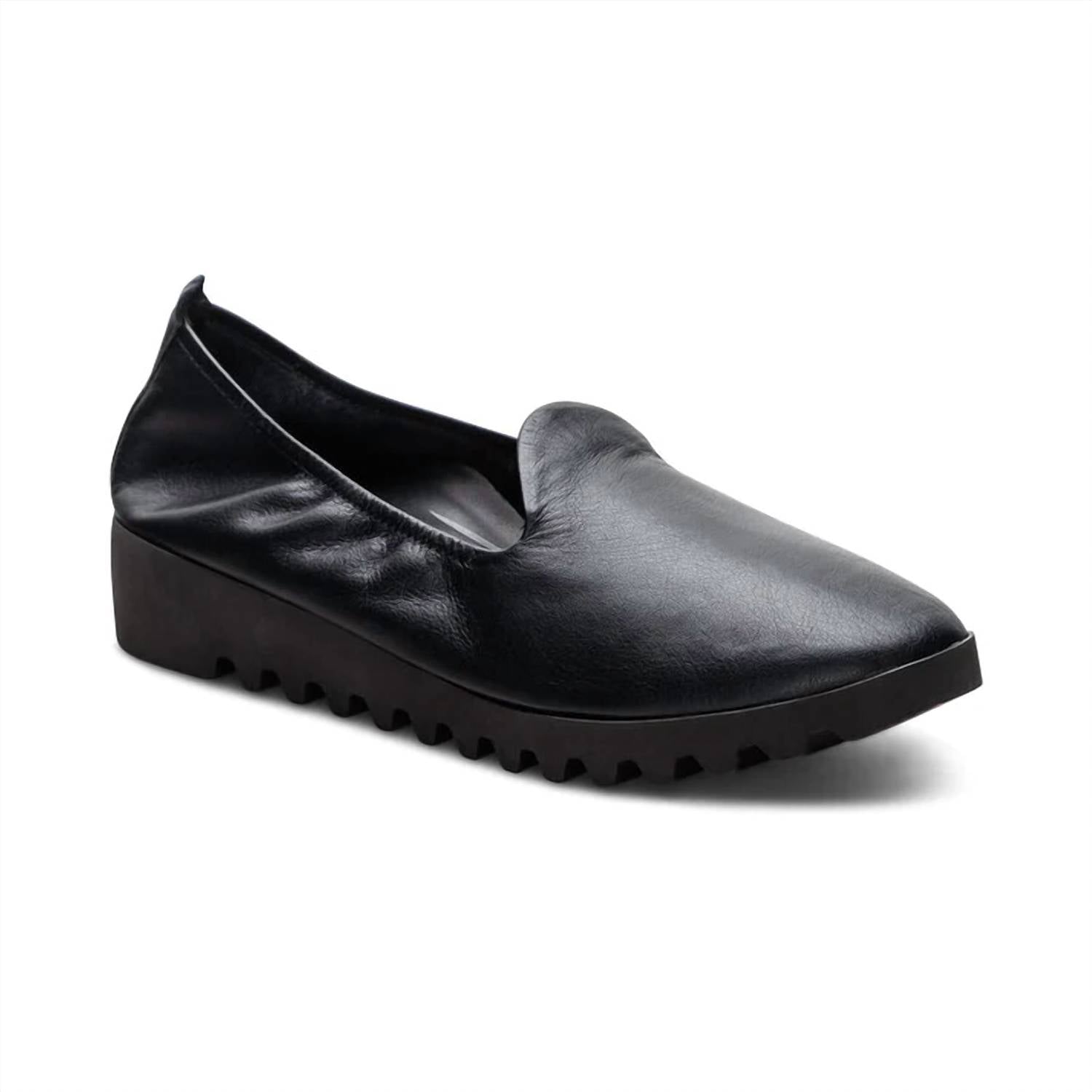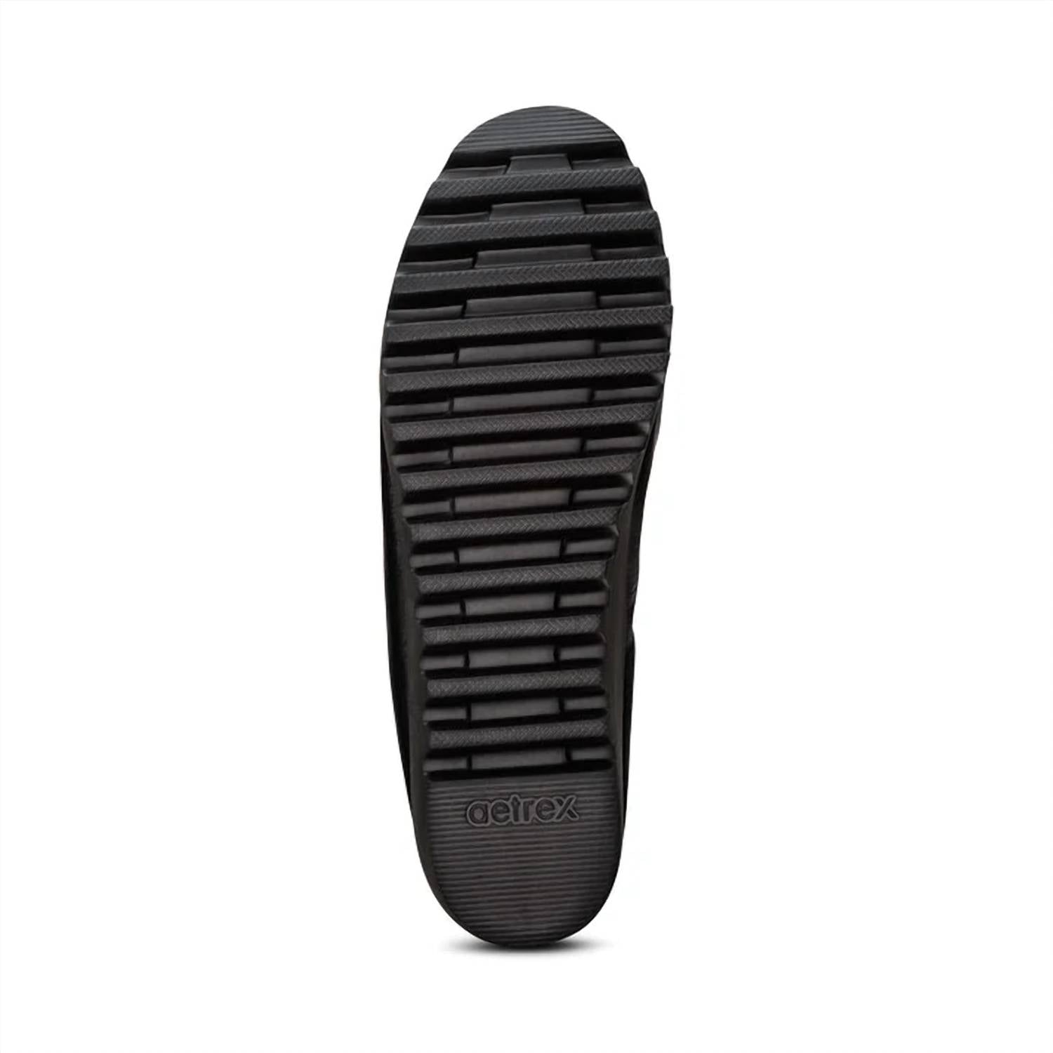 Loafers so versatile you can wear them with just about anything. Features a soft leather upper with an elastic topline for a snug fit, and a rubber outsole for durability. Enjoy the benefits of the built-in Aetrex Orthotic System with a Memory Foam Footbed featuring SkyLite Technology, providing essential arch support and relief from common foot pains. Slip into this chic almond-toe, black loafer with a modest 1.5" heel height, perfect for all-day wear.