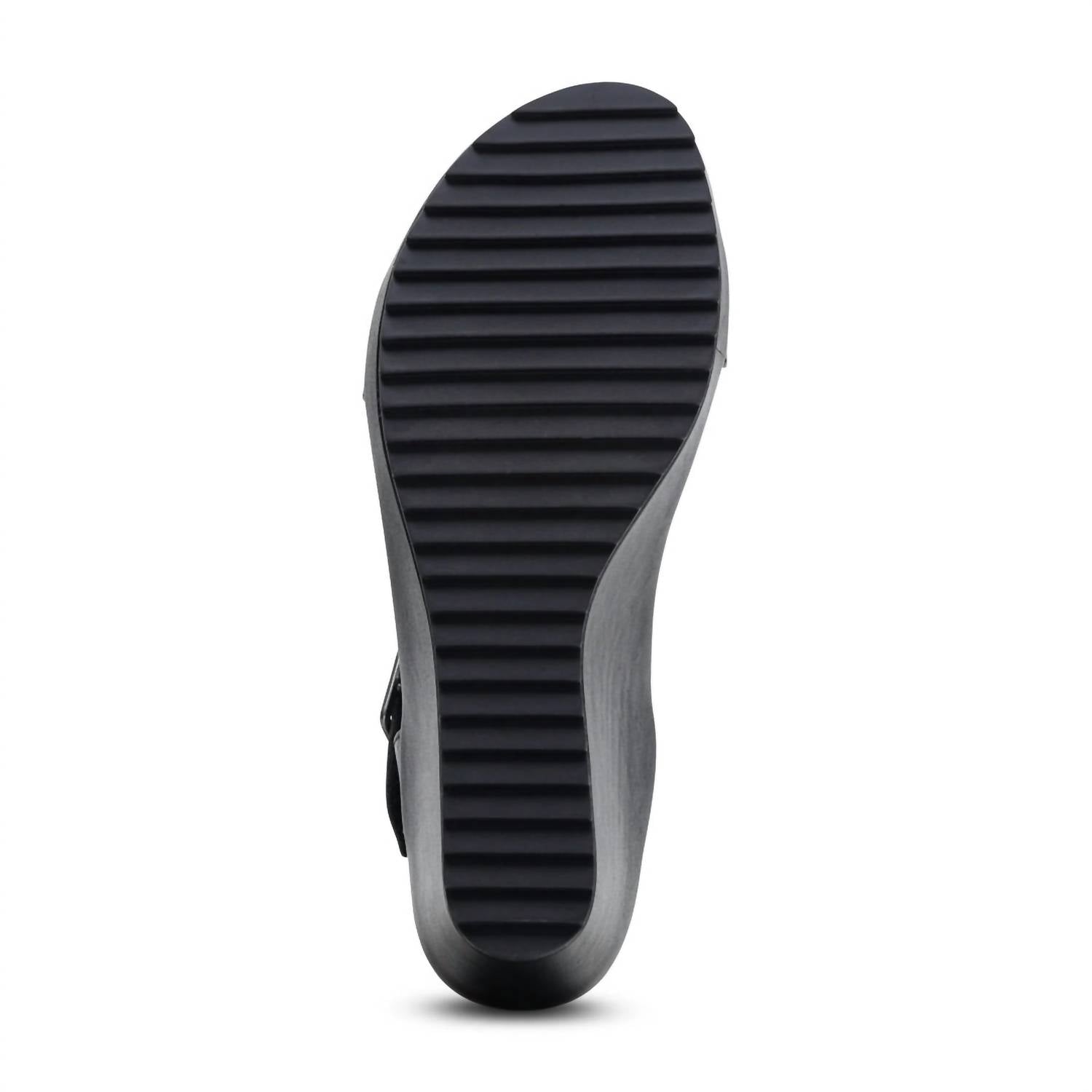 Elevate your footwear game with these adorable wedges. Step into summer with the Andrea Wedge Sandal by Aetrex, a women's shoe designed for both elegance and comfort. Featuring a 2.75" mid wedge heel, these sandals offer an open toe style perfect for dinner parties and Thanksgiving gatherings. Crafted with a leather upper and footbed, the sandals boast a molded, contoured insole for everyday support, with rubberized EVA midsole and leather lining. With an adjustable quarter strap featuring hook & loop closures, they provide a snug fit ideal for regular to wide widths, making them an excellent choice for summer workwear occasions.
