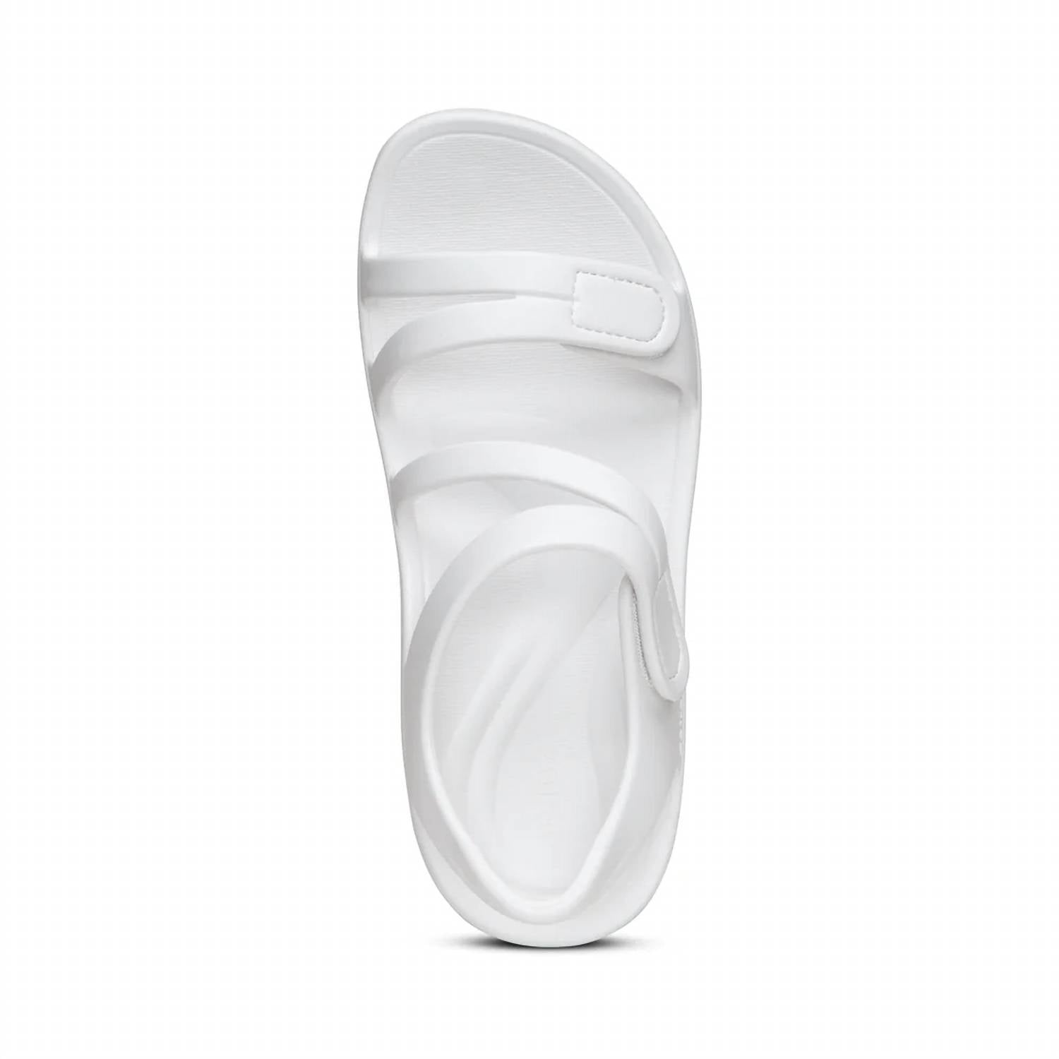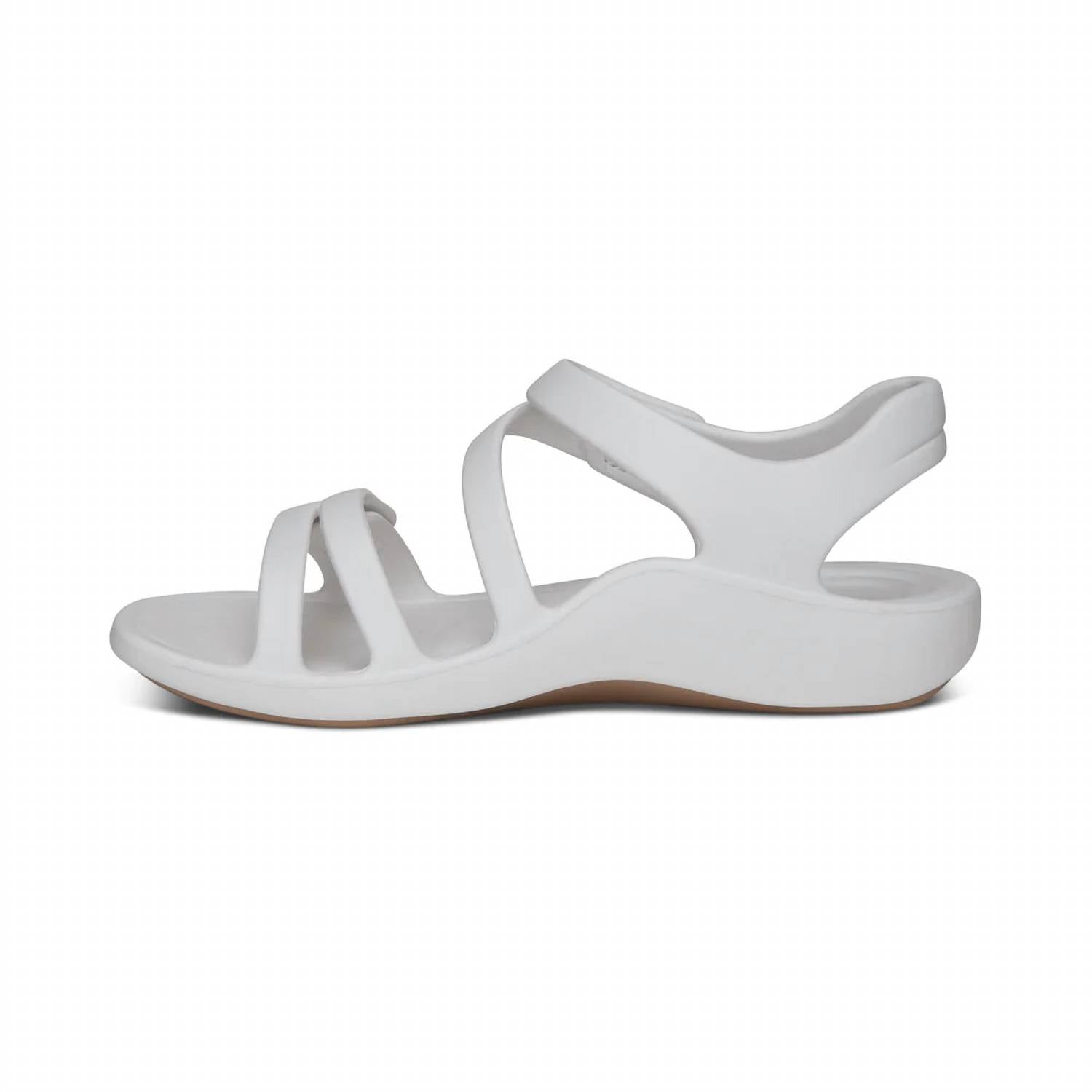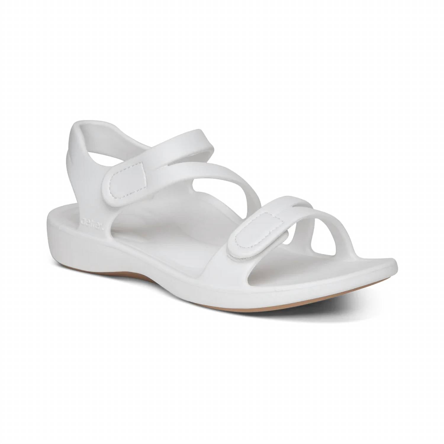 This sandal will take you from brunch to dinner and everything in between. Introducing the Aetrex Women's Jillian Sport Sandal in classic white, an ultimate choice for beach day adventures. Crafted from lightweight UltraSKY™ EVA foam, these open-toe sandals offer unparalleled cushioning, shock absorption, and water-friendly attributes, ensuring comfort that lasts all summer. Adjustability is a breeze with hook & loop closures, while a low flat heel of 1.1" provides stable support. Ideal for the athleisure trend, these shoes are so light they even float!