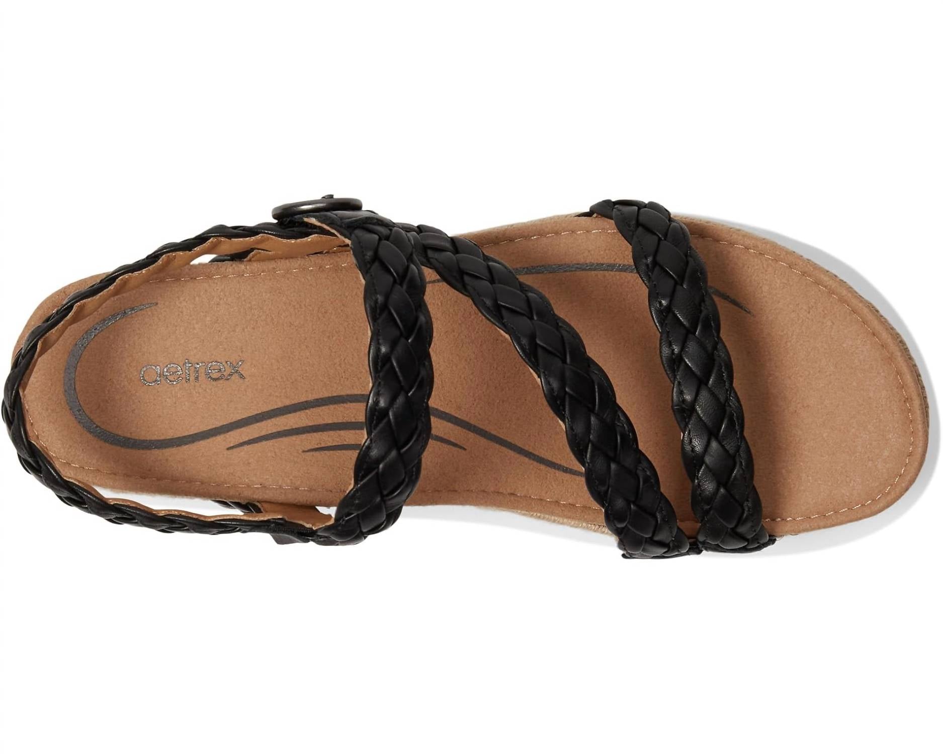 Flowy dresses, cropped pants, and even jumpsuits... this sandal works with them all! Discover the Women’s Julia Platform Sandal by Aetrex, a stylish blend of practicality and comfort designed for the modern woman. These sandals are crafted from luxurious leather and feature a sleek wrap-around closure for a secure fit. The 1.5" platform heel adds a stylish lift, while the round toe and roomy toe box offer unmatched forefoot freedom. Ideal for travel and summer outings, they boast a platform heel inspired by 90s fashion and provide exceptional arch support, backed by research for relieving heel and arch pain.
