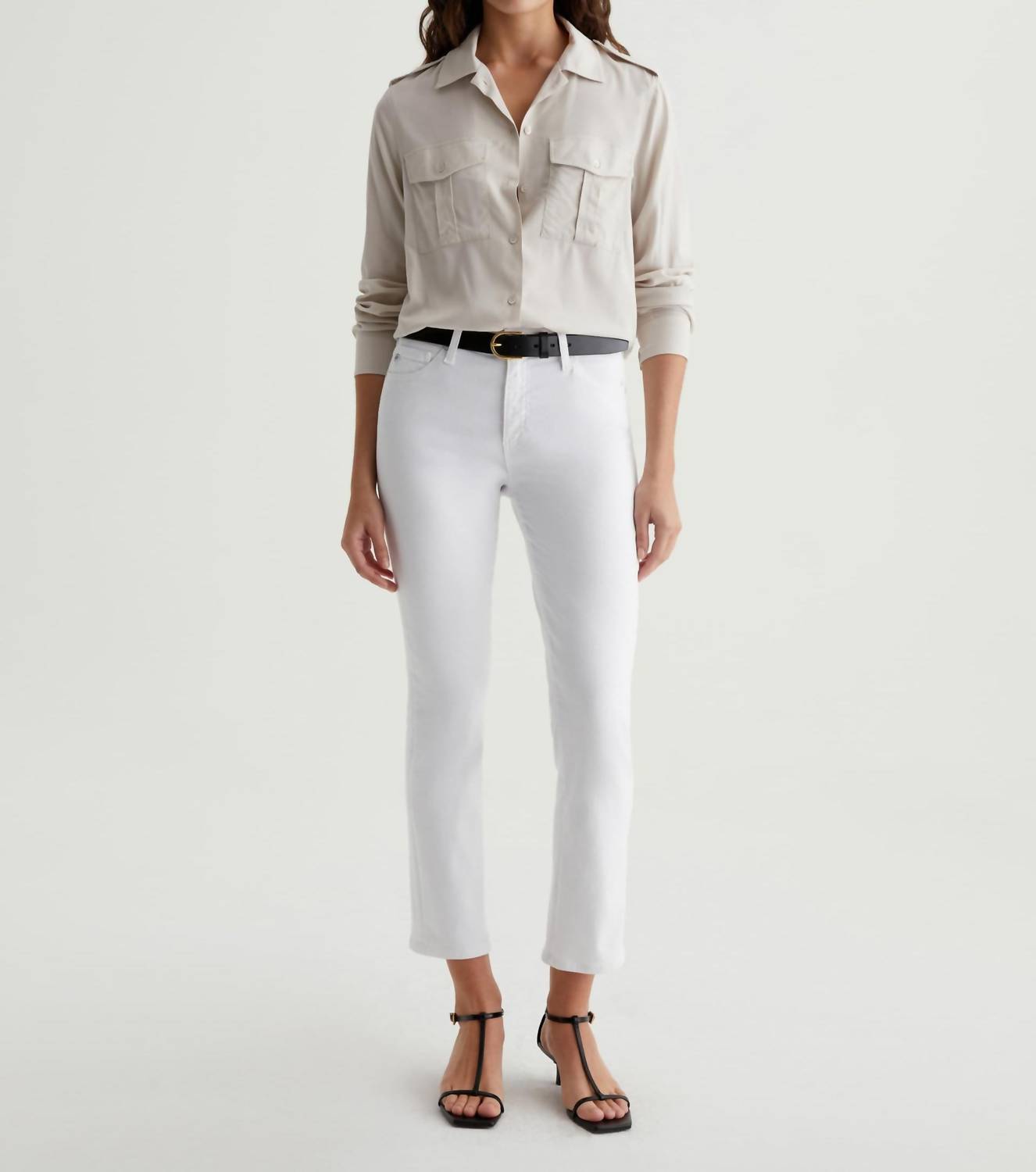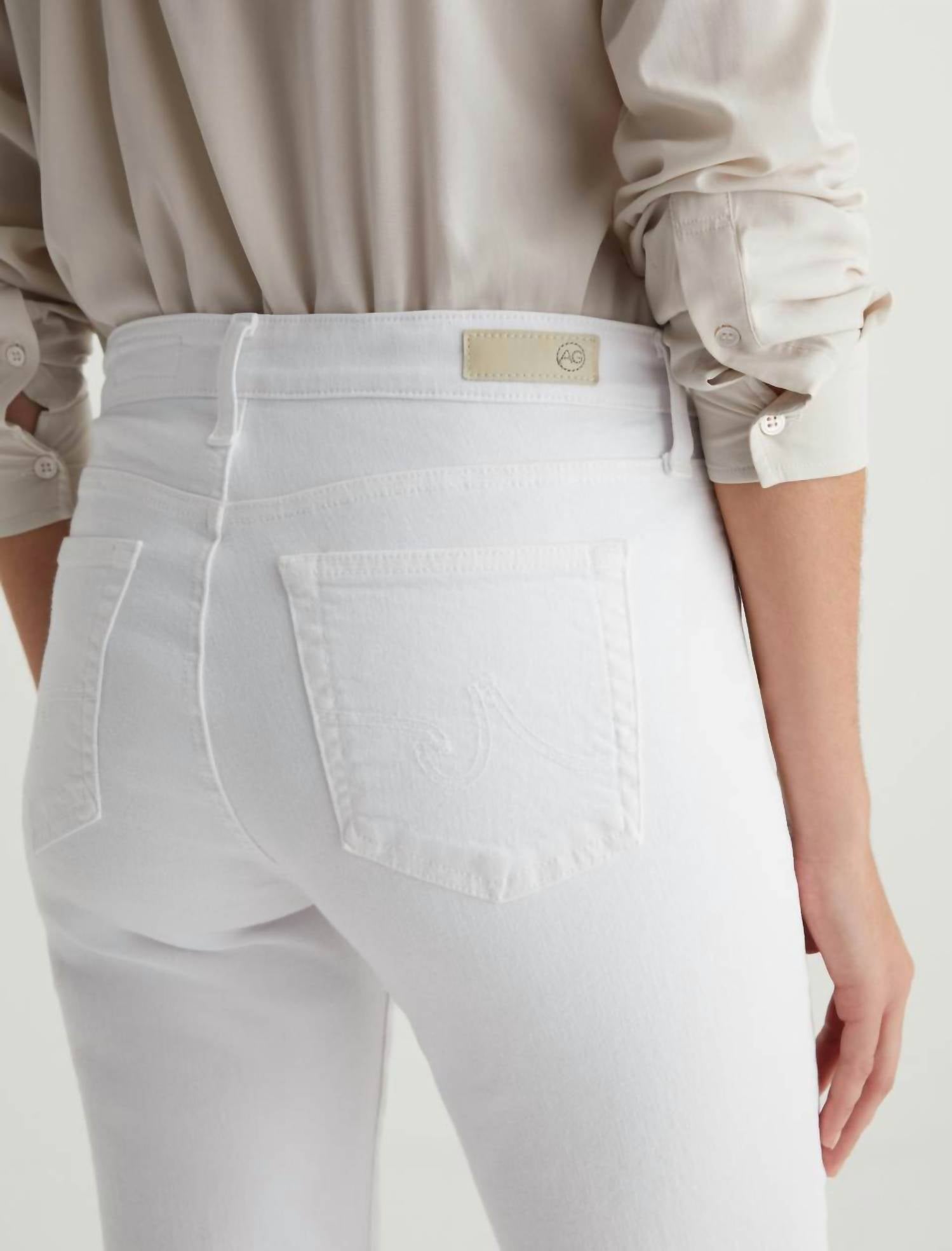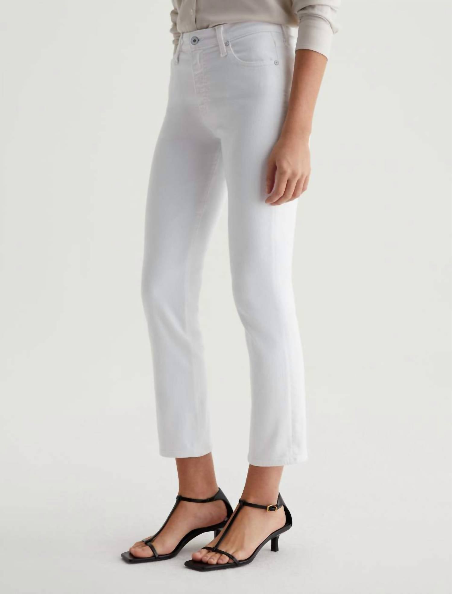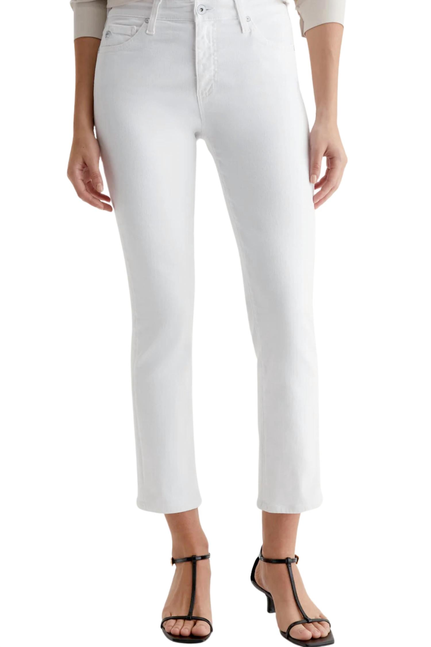 These must-have jeans are fit to perfection. Discover the Mari Crop Mid-rise Slim Straight Jeans by AG Jeans, a stylish addition to your spring wardrobe in Gallery White. These women's jeans are crafted from 10.25 oz. Cloud Soft Stretch Denim, a luxurious cotton blend (93% Cotton, 5% Polyester, 2% Elastane) that softens with every wear. Featuring a slim fit with a straight-leg silhouette, these jeans have a 27" inseam and a rise of 9 3/4", with button closure and functional five-pocket design for convenience. Easy to care for, simply machine wash and tumble dry, making them ideal for travel and minimalist style enthusiasts.
