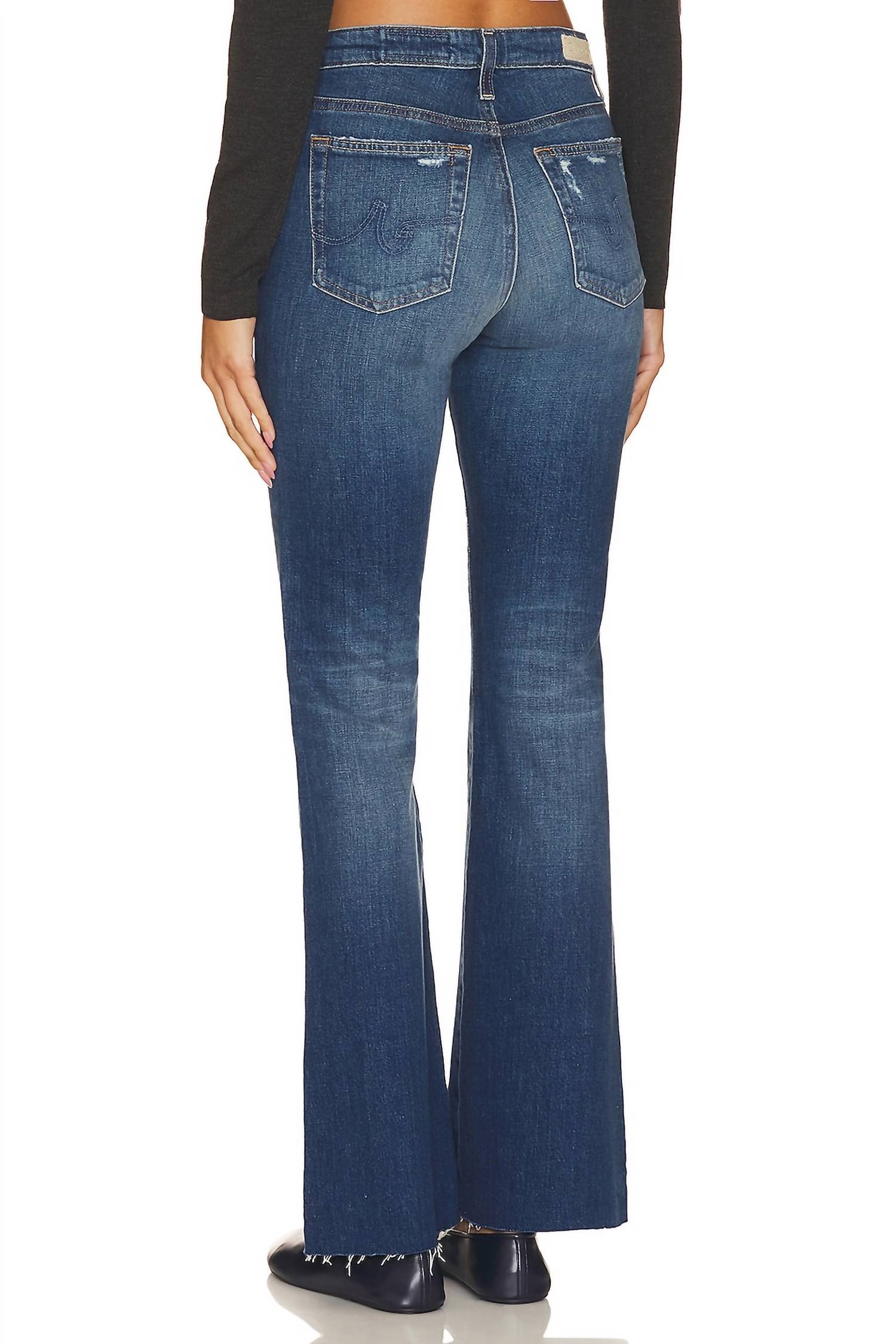 A boot-cut jean that not only looks good on, you'll be comfortable in them all day. Step out in style with the Farrah Boot Cut Jeans by AG Jeans, a perfect blend of classic design and contemporary edge. Made from a comfortable 98% cotton and 2% elastane blend, these jeans offer a slight stretch for added comfort. Crafted in Mexico, they feature a high-rise waist with a zip fly and button closure, and a distinctive raw hem that breaks from 15" at the knee to a 19" leg opening. With 5-pocket styling and distressing at the back pockets, they are machine washable for easy care and an ideal choice for any summer music festival or casual Thanksgiving outing.