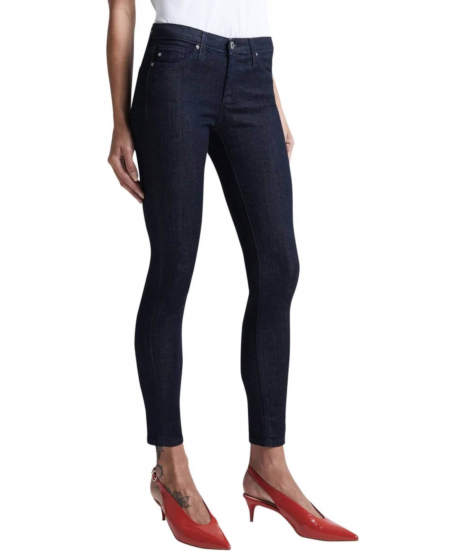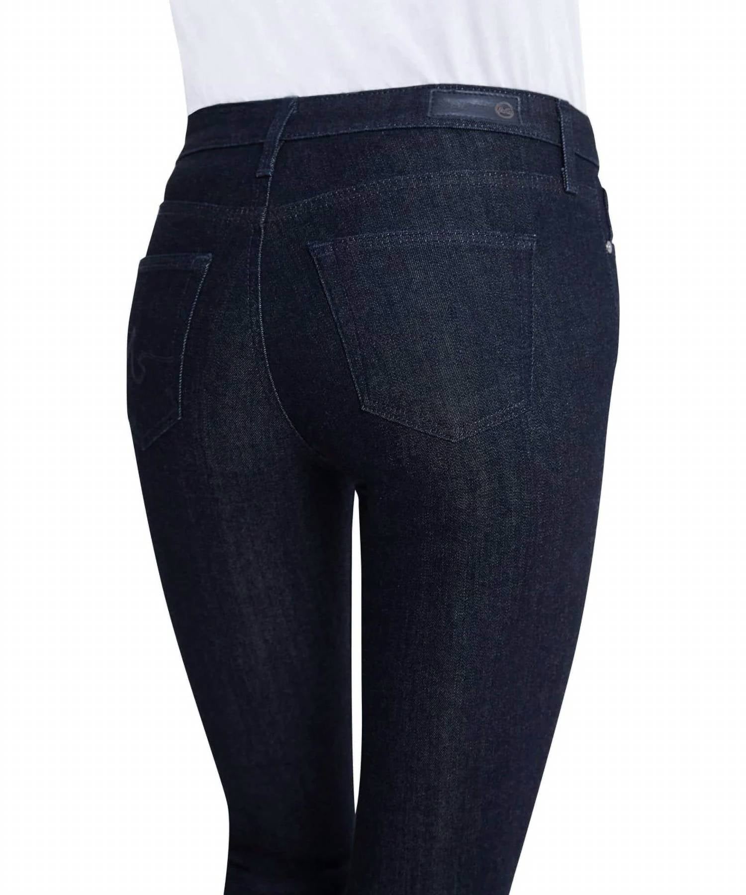 Meet the AG Jeans Legging Ankle Skinny Jeans, the perfect blend of comfort and style with a mid-rise fit. These jeans feature a dark indigo wash, crafted from premium denim with a composition of 98% Cotton and 2% Polyurethane. Closure: Zip fly with button. Inseam: 27.75". Front rise: 8". Back rise: 12.75". Leg opening: 8.75". Waist: 12.5". Designed with a classic fit, they flaunt tonal seamless stitching, gunmetal logo hardware, and a five-pocket silhouette.