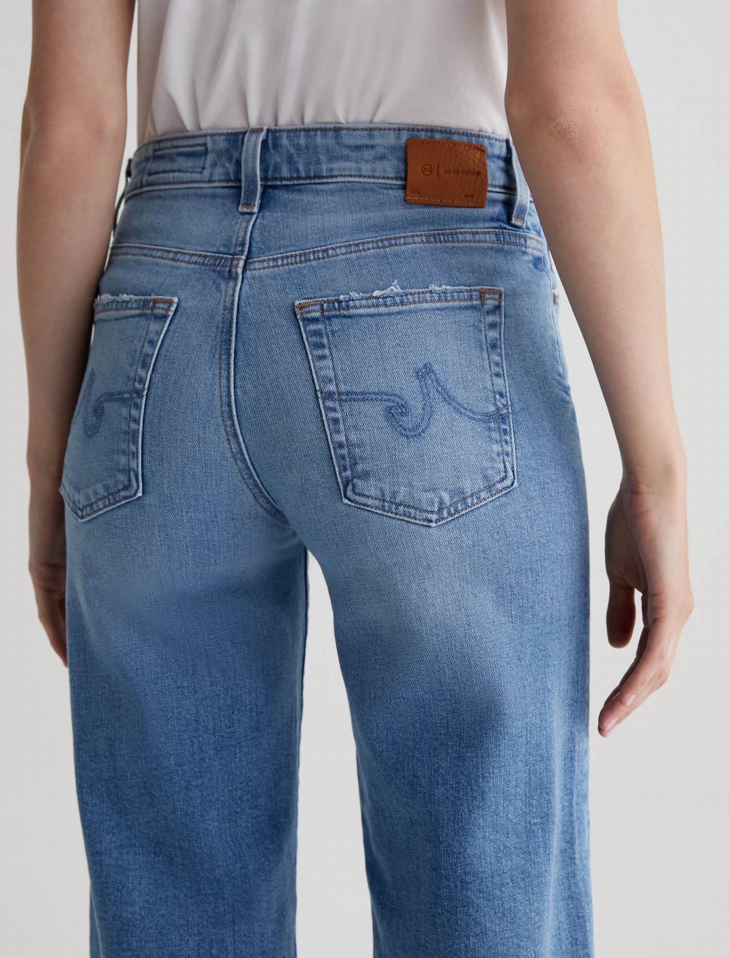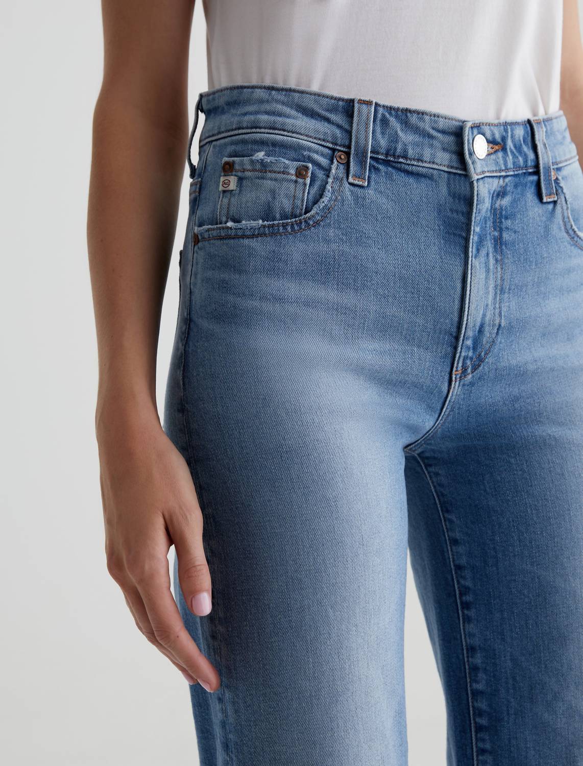 Comfortable and stylish, we love this cropped jean for all of the obvious reasons. Presenting the Saige Wide Leg Crop by AG Jeans, a perfect fusion of vintage style and modern comfort. These high-rise jeans, crafted from 98% Cotton and 2% Elastane, feature a raw hemline and a luxurious 11.75 oz. Vintage Comfort Stretch Denim, accentuated by marigold stitching and a classic light indigo wash. Designed for ease, it boasts a traditional button closure and five-pocket design for practicality and style. For easy care, machine wash cold with like colors and tumble dry promptly. Ideal for adding versatility to your summer wardrobe.