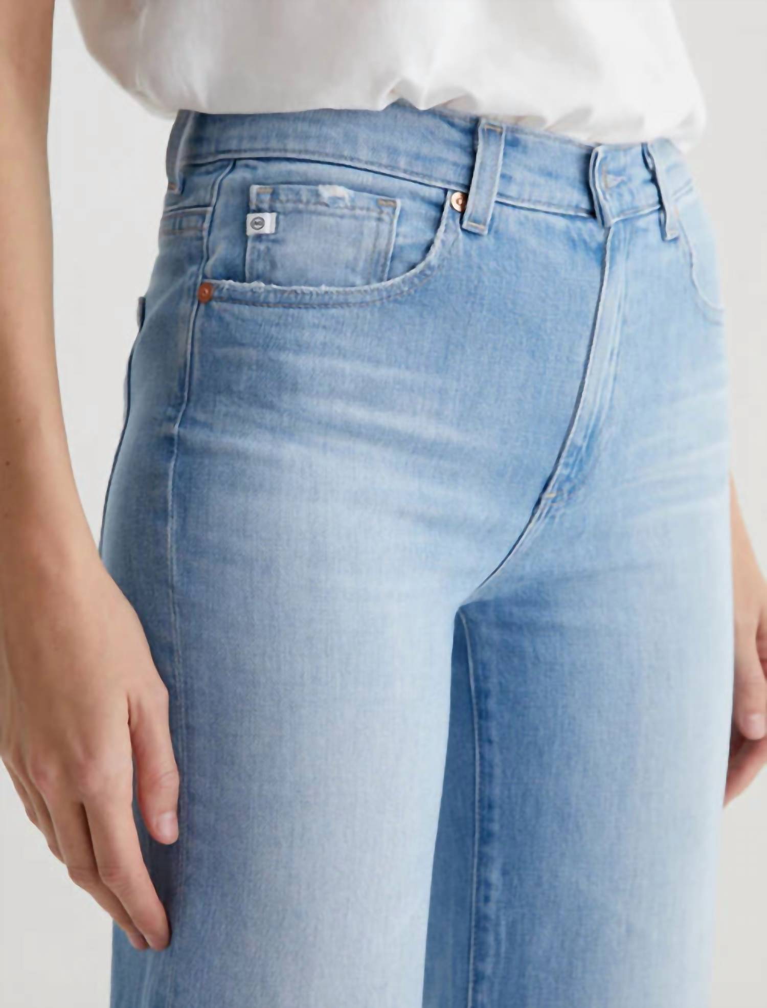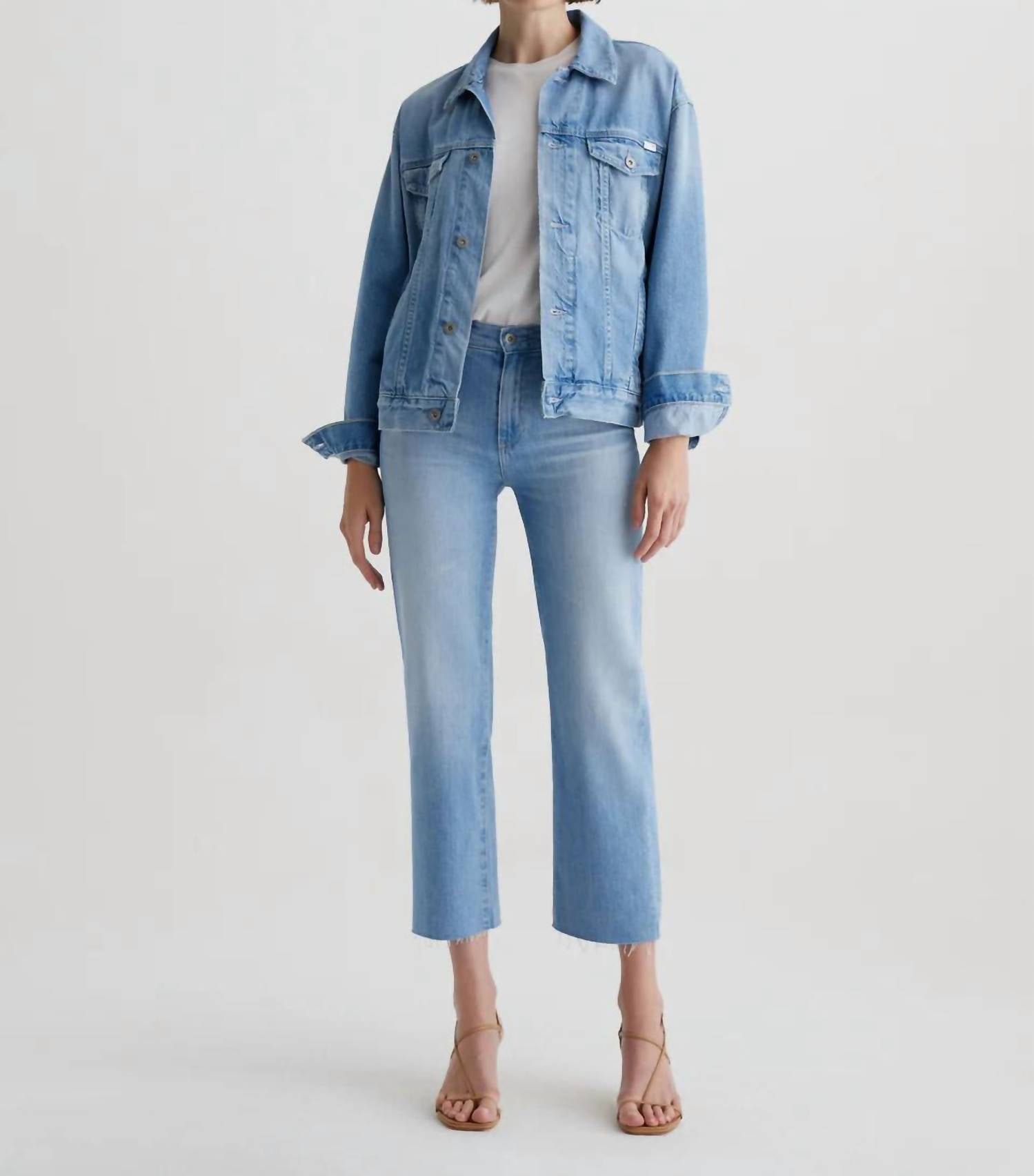 These must-have jeans are fit to perfection. The Brinley Crop Jeans by AG Jeans offer a chic touch to your warm-weather wardrobe with a mid-rise waist and straight-leg silhouette. Crafted from Italian Journey Denim, these jeans boast a sleek medium wash with a hint of distressing. Designed with a zip closure and raw ankle-baring hems, the pants offer a casual yet sophisticated style. Care is simple with a machine wash for easy maintenance. Model is wearing a size 26, with dimensions: Front Rise 10 1/4", Knee Opening 17 1/4", Bottom Opening 16", Inseam 27".