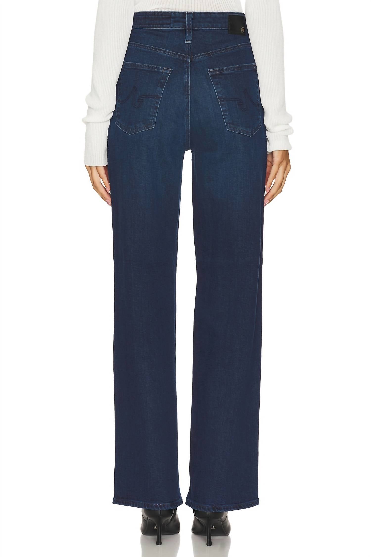 Just as cute as they are comfortable. Meet the Kora High Rise Wide Leg Jeans by AG Jeans, a trendy choice for streetwear enthusiasts. These jeans come in the Midnight Sun color and feature an ultra-high rise with a relaxed, wide-leg fit. Crafted from Vintage Comfort Stretch Denim, they contain 98% Cotton and 2% Elastane, offering flexibility in a dark wash. With a button closure, these jeans can be machine washed cold and tumble dried low. Front rise measures 11.5", knee opening is 20", bottom opening is 19", and inseam is 32".