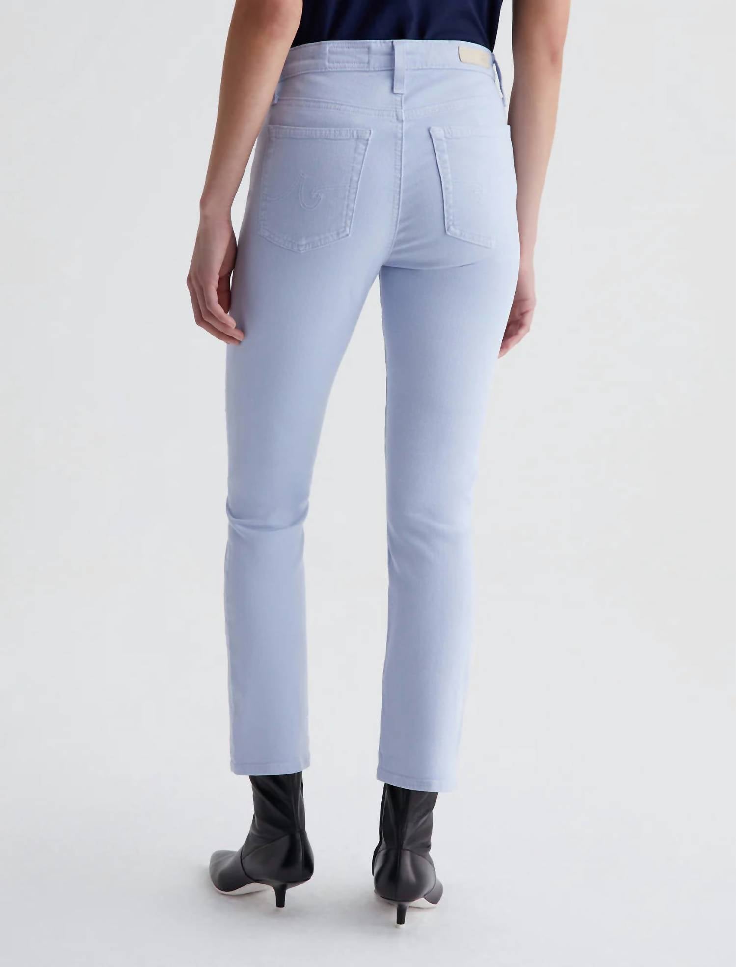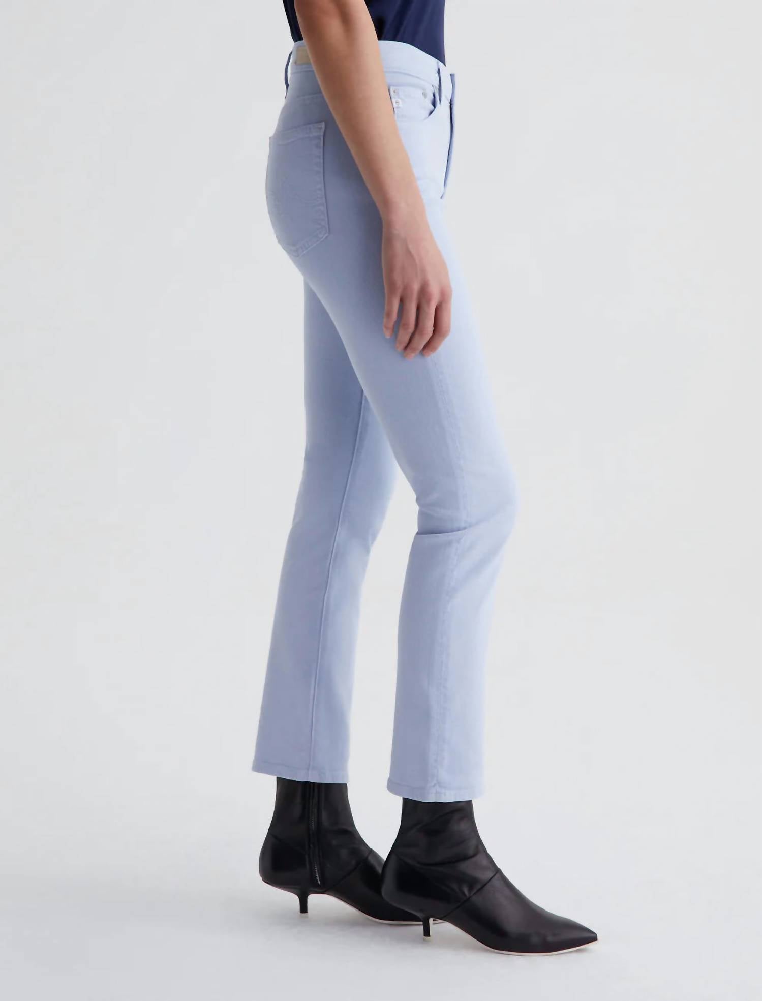 Pair these straight leg jeans with flats, sandals or even heels! You can't go wrong. Discover the AG Mari Crop High Rise Slim Straight Cut Jeans by AG Jeans in a stunning Blue Whisper. Crafted from a comfortable cotton blend in a solid pattern, these jeans showcase a flattering high-rise waist and slim fit, ending in a cropped 27-inch inseam. With a straight leg design and 12.75-inch bottom opening, they feature a practical button closure and are equipped with pockets. Care: Machine wash and tumble dry for easy maintenance. Front rise is 9.75 inches, making it perfect for stylish summer streetwear and holiday parties.